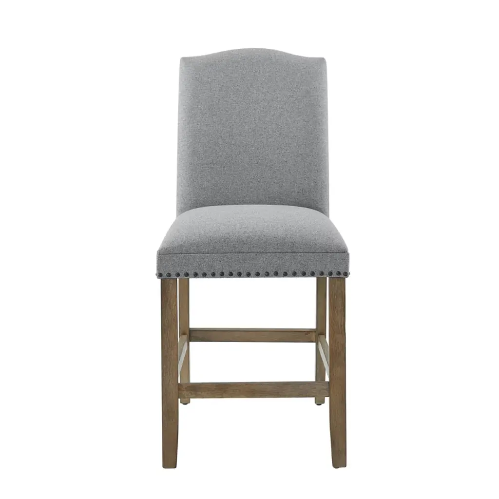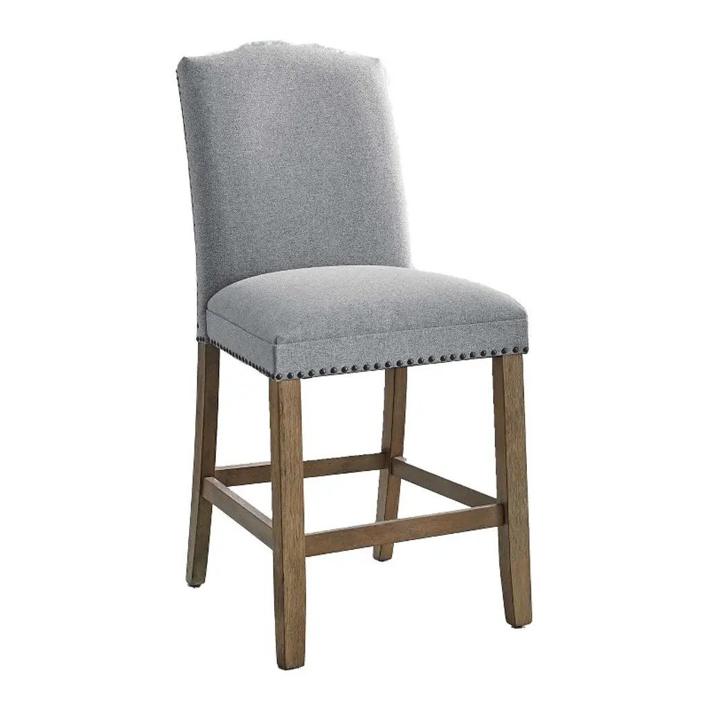 Memory foam top layer and stretchers add to the comfort of the chair whether at a bar or table Refined rustic styling brings an elegant casual feel to the kitchen or dining area in the Grayson Counter Chair. The neutral Driftwood finish and ash-gray fabric is accented with a black nail head trim to blend well with many different decors. The neutral Driftwood finish and ash-gray fabric is accented with a black nail head trim to blend well with many different decors. The 24" seat height on the chair allows a comfortable seat at 36" counters or to pair beautifully with the Grayson Counter Collection.