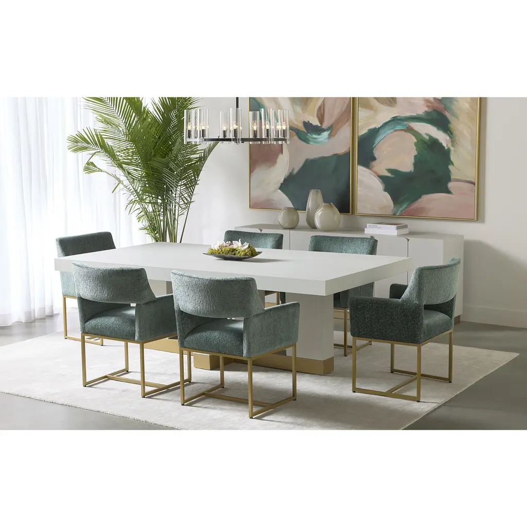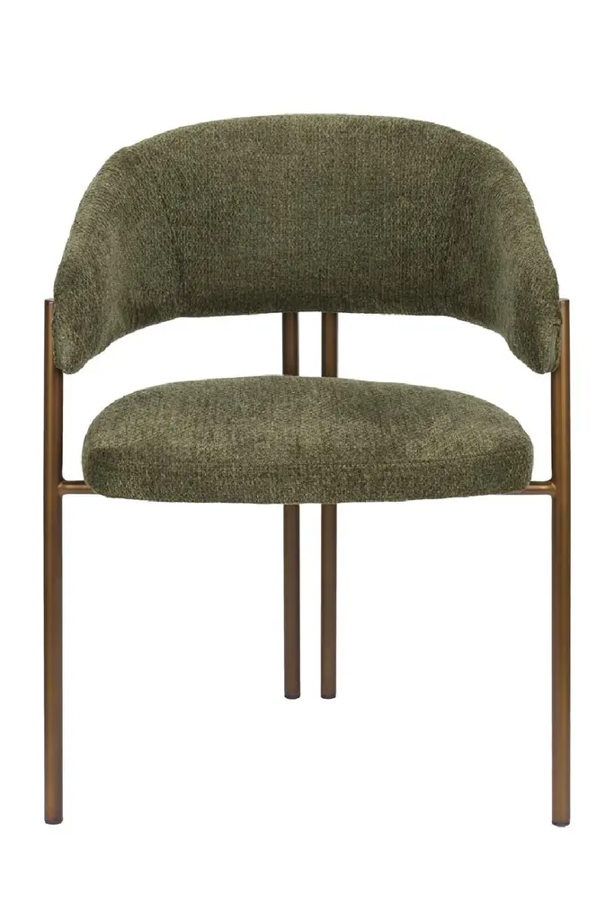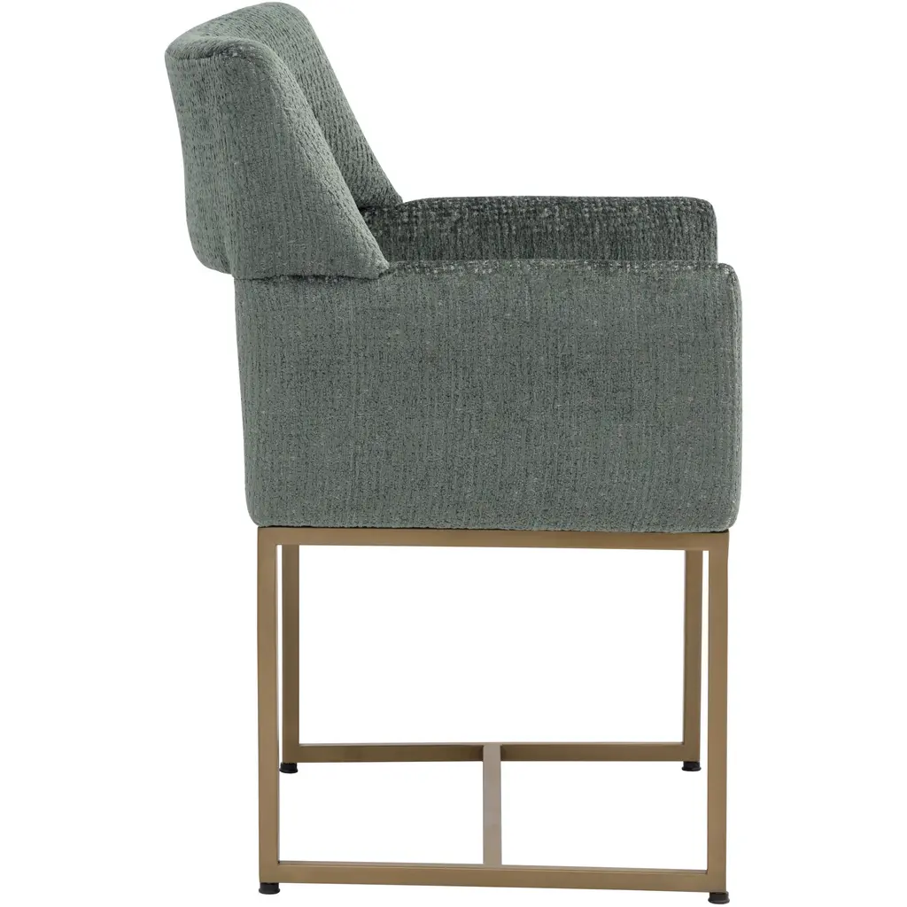 A refreshing take on Scandinavian design, this dining chair is a great addition to any dining or living space. Upholstered in aura teal fabric for eyecatching comfort. Sits atop a powder-coated steel base with a rustic bronze finish. Features a square solid poplar wood frame.ÂPairs well with the coordinating dining table. As wood is an organic, porous material, these pieces will contain natural variation of texture and may also exhibit fine indentations and cracks. Wood pieces will also display a disparity of colour and grain, and visible knots and burls that add to the character of each piece.