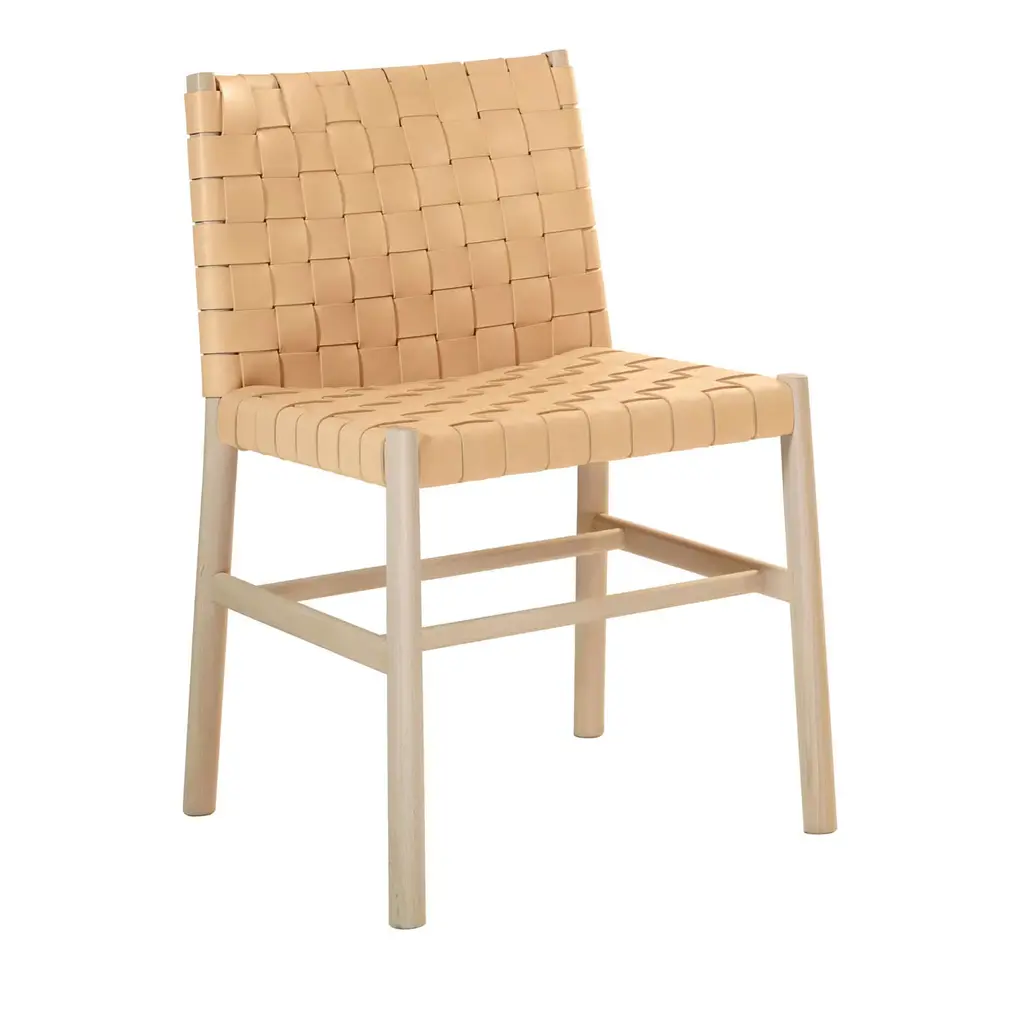 Expertly crafted with acute attention to detail, we designed the Greely Dining Chair with a light and airy, yet sophisticated feel. Woven with aniline dyed leather wrapped around a solid white oak frame featuring slightly tapered legs, this chair instantly elevates your dining space with its modern, streamlined silhouette.
