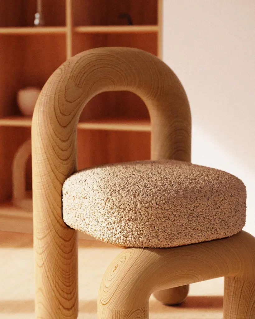 Green Velvet Natural Oak Lithic Dining Chair by Maha Alavi StudioDimensions: W 58 x D 54 x H 86 cmMaterials: Solid Oak.Maha Alavi is a Tokyo-based Canadian industrial designer. Her practice aims to explore context through connection and creation, informed by her prior training in philosophy and psychology. Alavi takes inspiration from travel — the way daily rhythms shift throughout different global geographies. She is fascinated by the influence of objects on people and spaces, and construction of cultural archetypes through design. Alavi cites places like Berlin, Kyoto, and Singapore as major sources of inspiration for her work. Time spent in cities so connected to both industry and nature have created a sensibility that focuses on detail and balance, and nurtured an understanding of light and seasons eventually inspiring her first hardware series, CERCLE. Through her unique lens Alavi transfigures both daily routines and unique experiences into exciting explorations of space and form. When designing, Alavi considers continuity in form and philosophy: the design must communicate its intent holistically and succinctly.