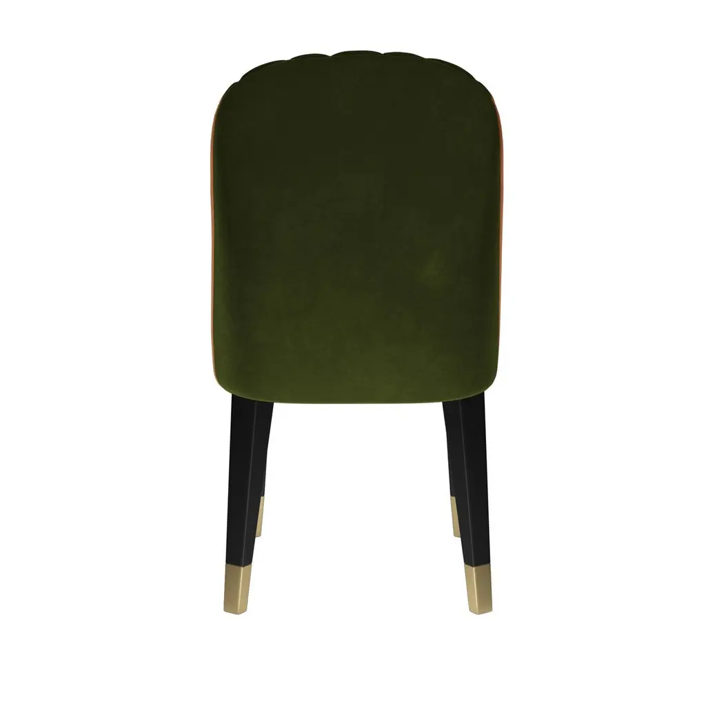 Green Velvet Upholstered 8 Dining Chairs With Gold Color Meta Detail