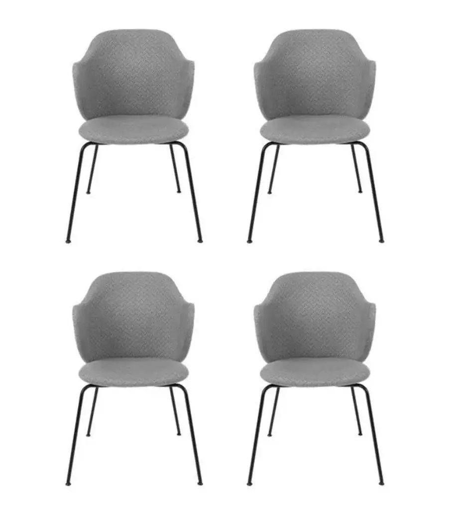 Set of 4 grey Jupiter Lassen chairs by Lassen Dimensions: W 58 x D 60 x H 88 cm Materials: Textile The Lassen chair by Flemming Lassen, Magnus Sangild and Marianne Viktor was launched in 2018 as an ode to Flemming Lassen’s uncompromising approach and special feel for detail, aesthetics, quality and form. The upholstered seat and back is placed on a geometric frame in powder-coated black metal and the dining chair embraces one’s body, letting you sit comfortably for hours on end. By Lassen is a Danish design brand focused on iconic designs created by Mogens and Flemming Lassen, founded by Lassens’ relatives in 2008.