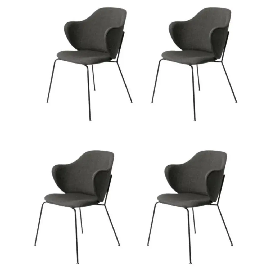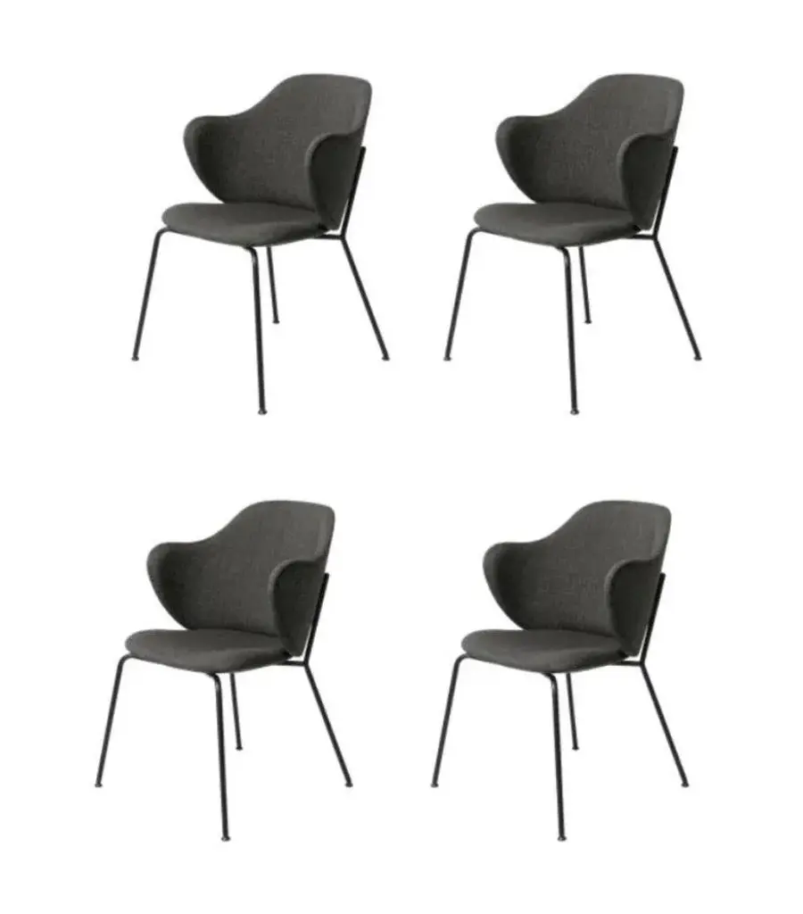 Set of 4 grey remix Lassen chairs by Lassen Dimensions: W 58 x D 60 x H 88 cm Materials: Textile The Lassen chair by Flemming Lassen, Magnus Sangild and Marianne Viktor was launched in 2018 as an ode to Flemming Lassen’s uncompromising approach and special feel for detail, aesthetics, quality and form. The upholstered seat and back is placed on a geometric frame in powder-coated black metal and the dining chair embraces one’s body, letting you sit comfortably for hours on end. By Lassen is a Danish design brand focused on iconic designs created by Mogens and Flemming Lassen, founded by Lassens’ relatives in 2008. Brothers Mogens (1901-1987) and Flemming (1902-1984) Lassen are known as two of Denmark’s greatest architects and designers. Both were renowned pioneers of Danish functionalism and modernist architecture, honoured with numerous prestigious medals and awards. Headed by Mogens Lassen’s grandson Søren Lassen, by Lassen carries on the brothers’ design philosophy by manufacturing their iconic designs as well as products by other designers that complement the Lassen’s functionalist style. The company’s Mission is to continue the tradition of timelessness, functionality and quality, and to introduce the Lassen’s design heritage to new generations.