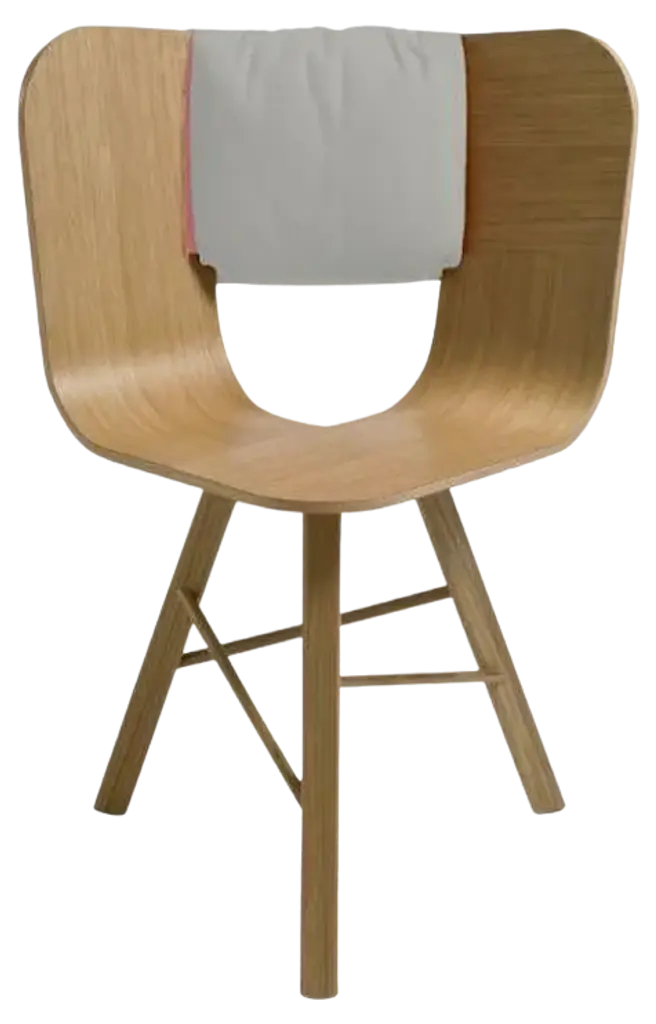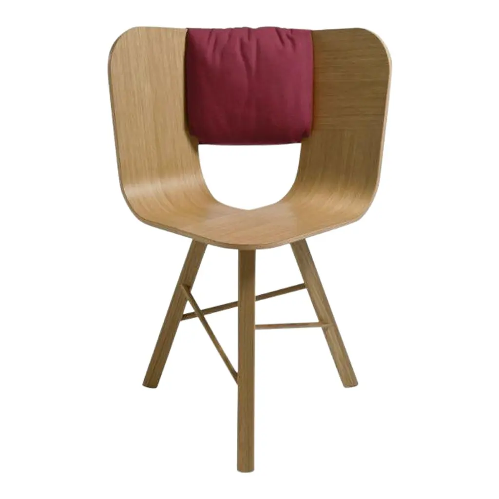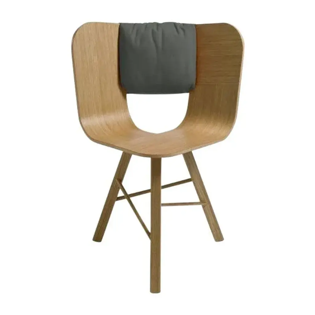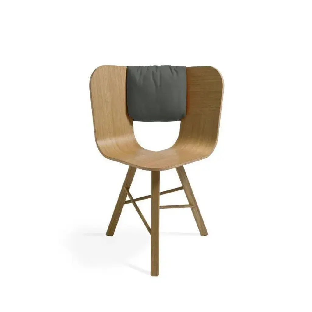 Saddle cushion, grigio for tria chair by colé italia with lorenz + kaz 2012 dimensions: - materials: shaped for tria chair; 2 pockets on the back, category c also available: different fabrics and colors. Tc: c.o.m. Fabric - send us your own material ca: cat a - angel (polypropylene), ganesha (synt. Leather), nord wool (felt) cb: cat b - tiffany (polyestere), lana (aquaclean) cc: cat c - velvetforthy (velvet), topia (wool), novum (wool), opera (felt) cp: cat p - milano (full grain leather) special cushion designed to fit with the back angle of tria chair in order to give more comfort to the seat. It is upholstered on the front and velcro fixed on the back with 2 useful pockets. Our iconic chair designed by german duo lorenz + kaz. Tria is a table chair, at the same time many people place it as a sculpture, as ornament in an entrance, a bedroom or in a living room. It recalls the impossible forms of dutch graphic artist and engraver maurits escher, defining itself in a game of twists and elusive leak. The corolla-shaped shell can be used in two different seating positions, center or side, in this case with one armrest. The shell is composed of three equal elements in bent plywood assembled together and veneered with a special wood finishing ivory/ black stripes. It is also available in veneered oak, natural or stained open pore in different colors, as well as customized colors (min. 4 units). Available with 3 or 4 solid wood legs, or 4 metal legs in different finishings. For a better back comfort if you use tria chair in center position, for dining or studying, you can add a back cushion specially designed for it, upholstered and coated with a wide range of fabrics.