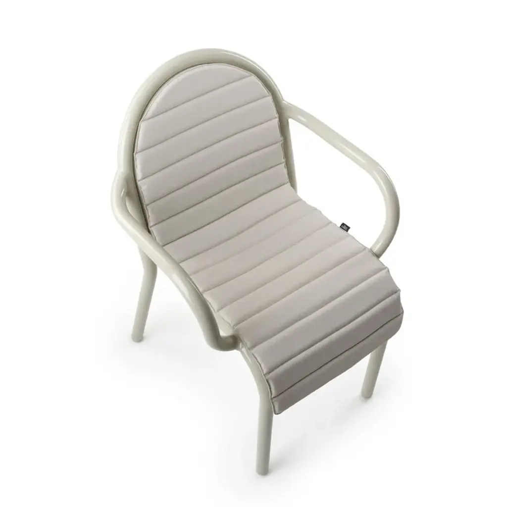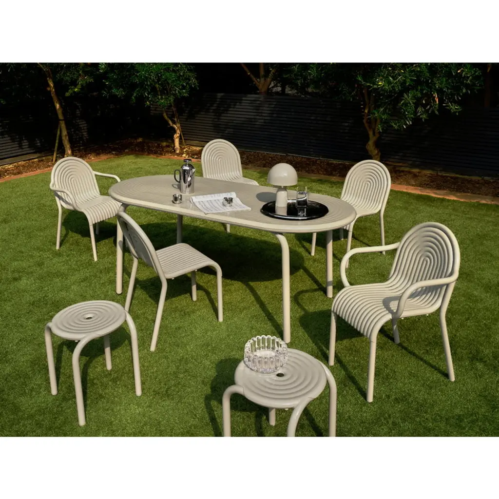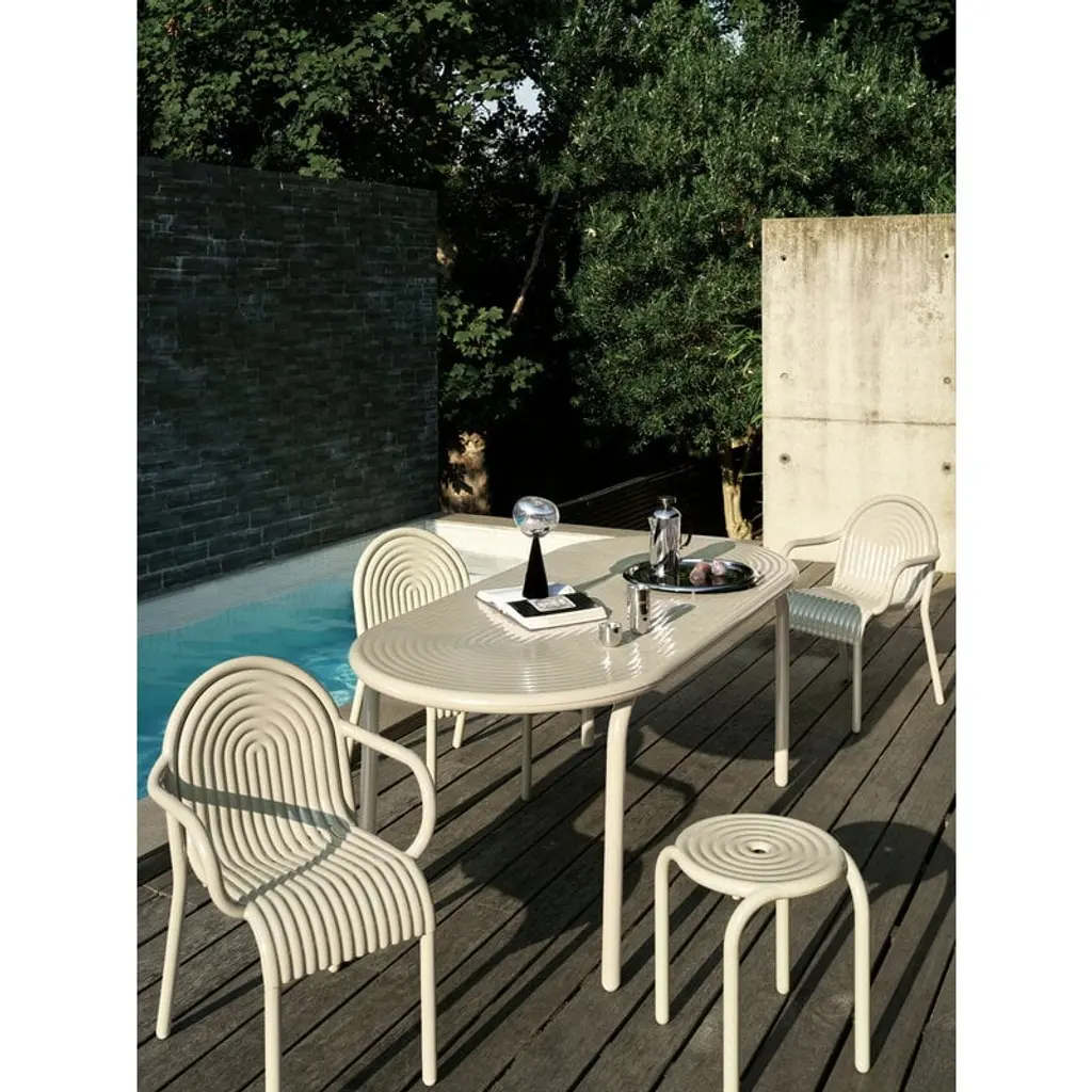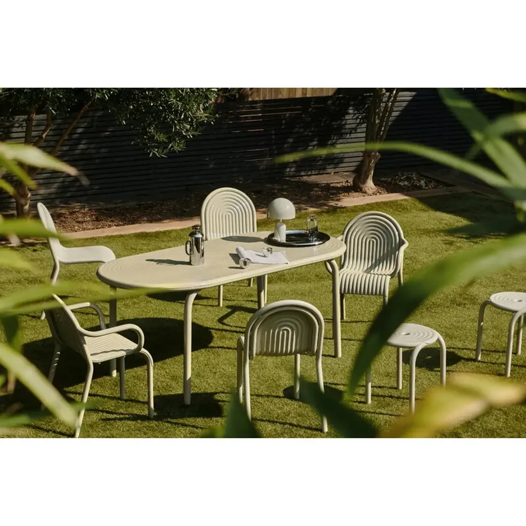 Tom Dixon’s Groove chair lives up to its name with its sleek curves and striking ridges that bring a bold rhythm to any outdoor space. The armchair is part of Tom Dixon’s first outdoor furniture collection which is the result of over ten years of design development. The glossy aluminum finish and Art Deco–inspired relief pattern make the Groove chair a standout piece that’s just as durable as it is eye-catching. Made from high-quality, corrosion-resistant aluminum and finished with a durable powder coating, the Groove furniture is designed to withstand the weather. And when summer’s over? The chairs can be stacked for easy storage or brought inside, where their sculptural form makes a stylish addition to the dining room or living space. For maximum comfort, complete the look with a separately sold seat cushion.