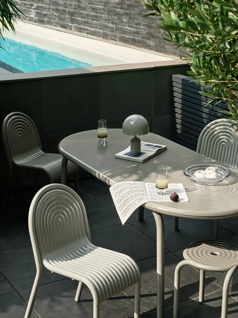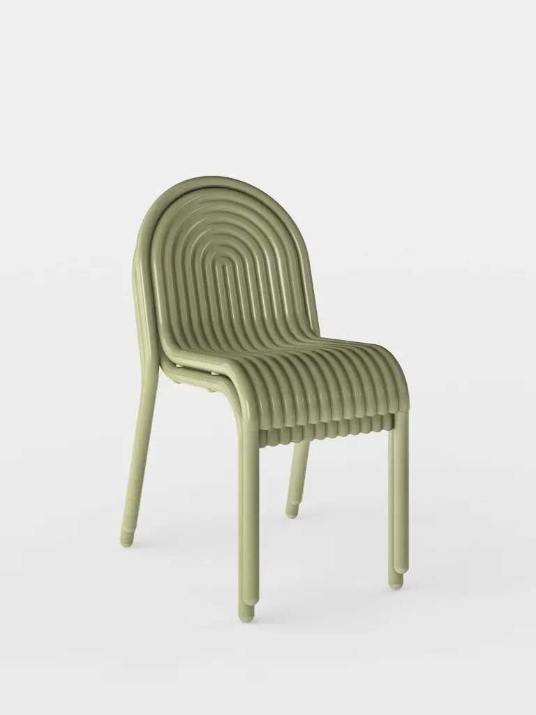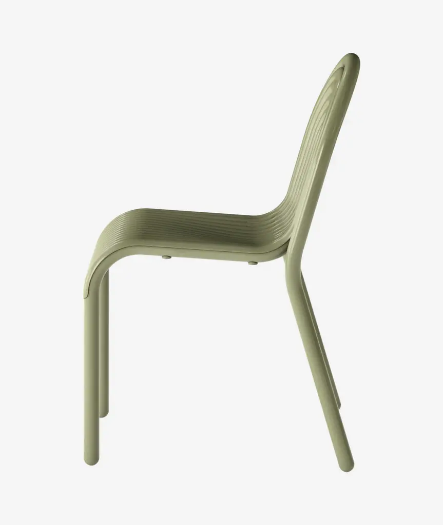Discover the Groove Side Chair in Moss, part of Tom Dixon's first outdoor collection. Featuring distinctive art deco-style raised ridges, this chair is crafted from premium aluminium using advanced manufacturing techniques for exceptional durability. Its high-quality powder-coated finish is solvent and VOC-free, making it ideal for outdoor use. Available in elegant Moss and Putty shades.