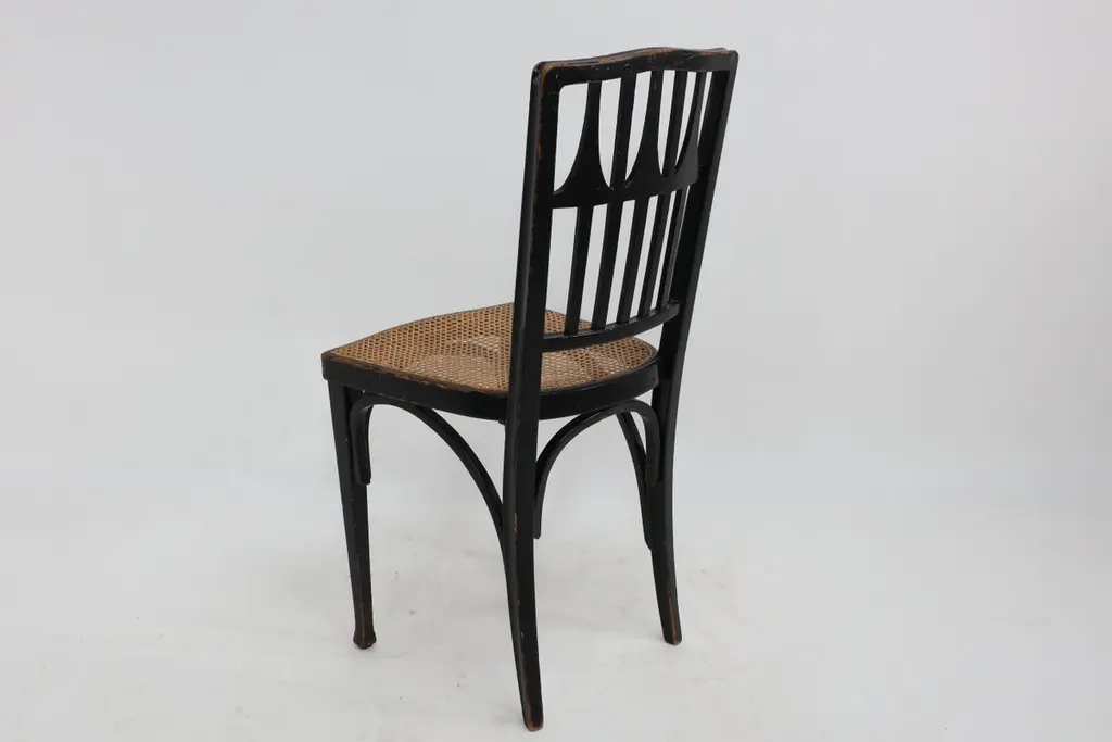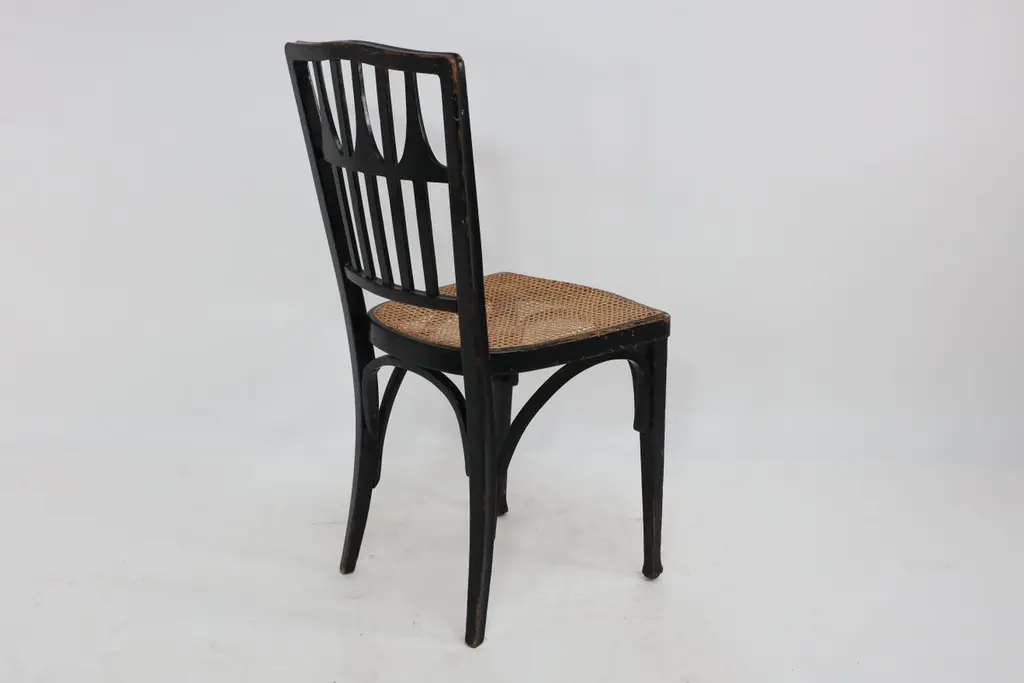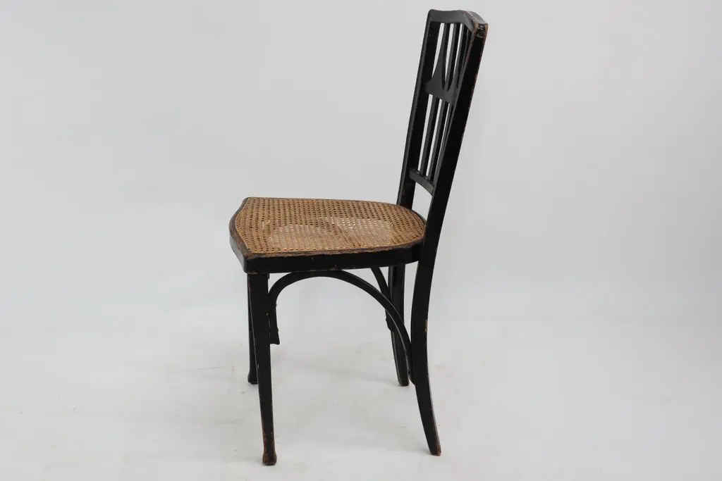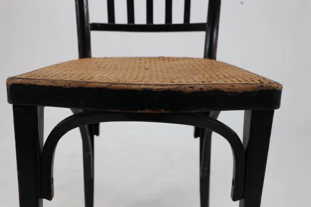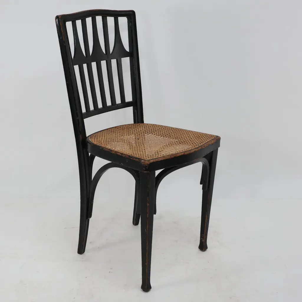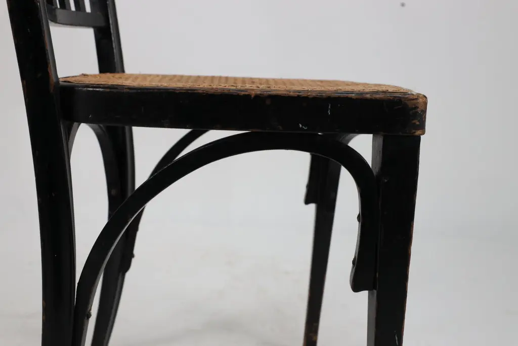 Gustav Siegel for J&J Kohn. Three ebonized Bentwood dining or cafe chairs. Two with new cane seats, one shown with original cane seat. Price per chair.All chairs are the same dimensions.