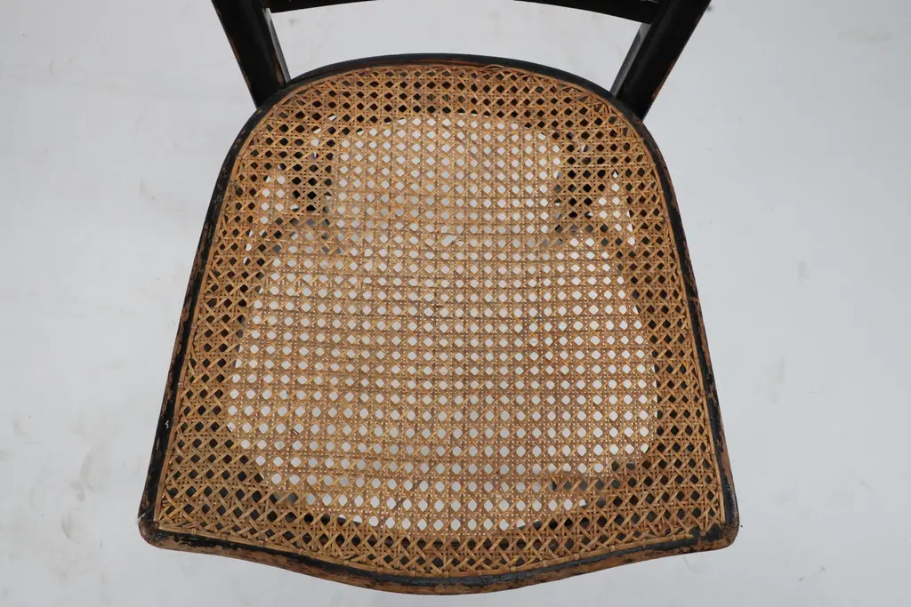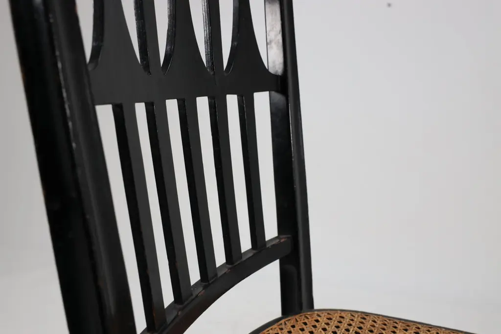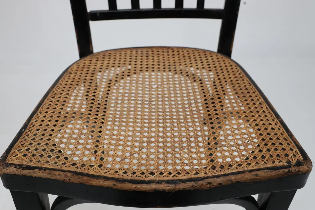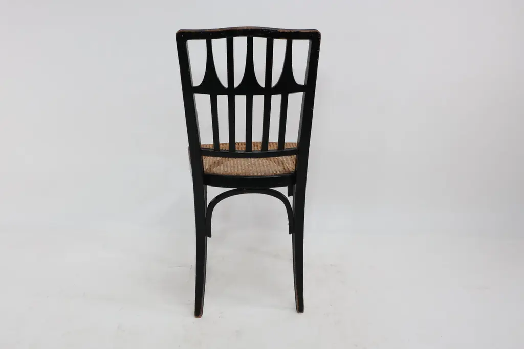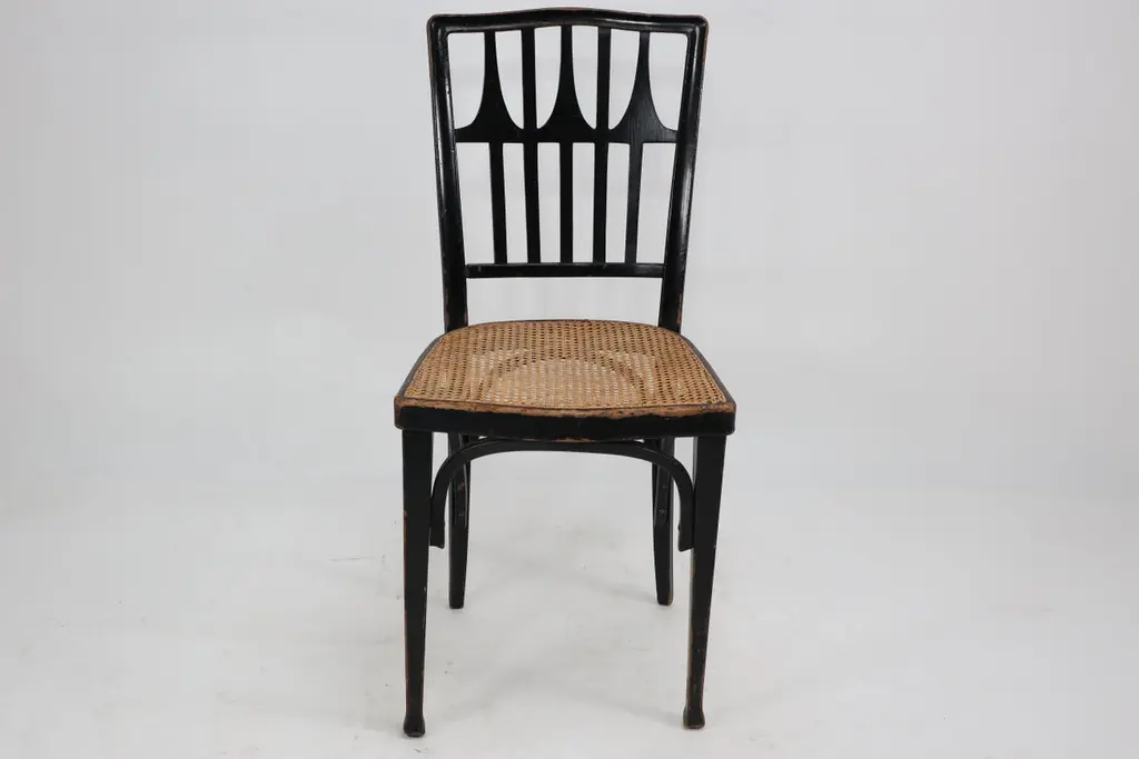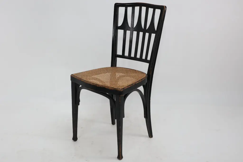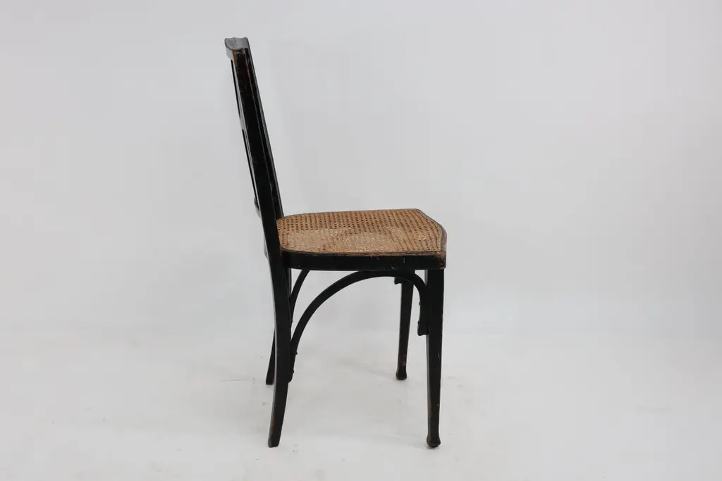 Gustav Siegel for J&J Kohn. Three ebonized Bentwood dining or cafe chairs. Two with new cane seats, one shown with original cane seat. Price per chair.All chairs are the same dimensions.