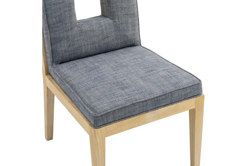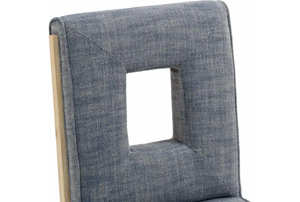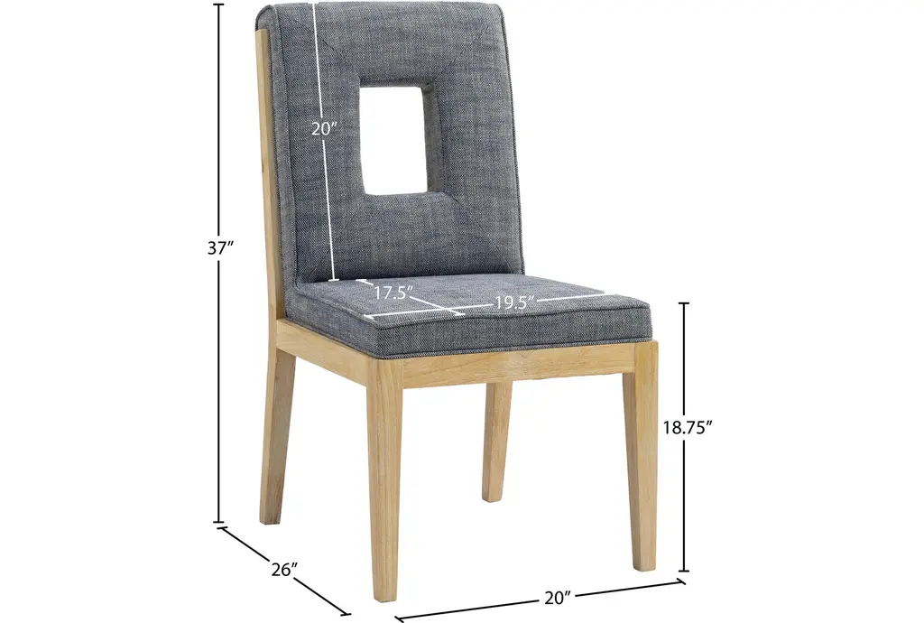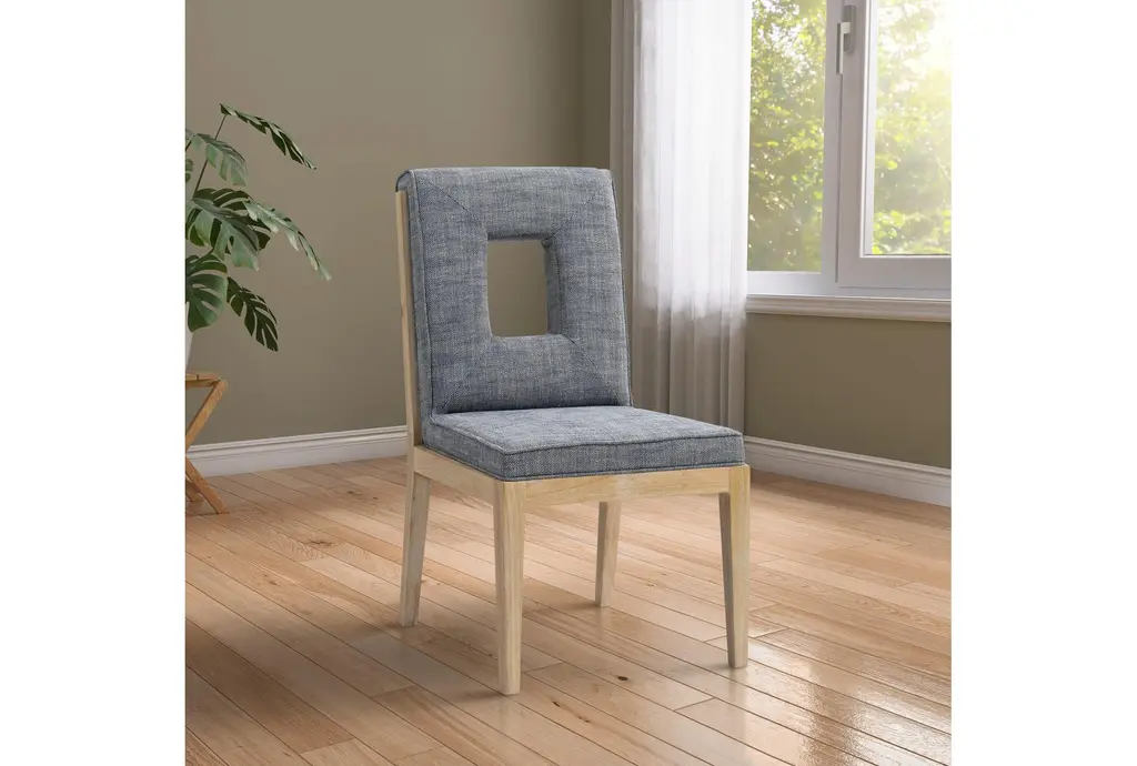 Gwendolyn Navy Linen Textured Upholstered Dining Side Chair With Natural Finish Set Of 2 presents a modern parsons silhouette with an armless profile that fits tight dining spaces. Upholstered in navy linen textured fabric, the cushioned seat and cut-out back deliver comfortable support and easy handling, while the rubberwood and plywood frame with tapered legs in a natural finish provides reliable stability. This set of two chairs is a practical, versatile choice for modern dining rooms where you want clean lines and comfortable seating for everyday meals.