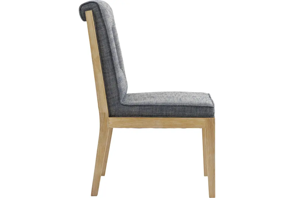 Gwendolyn Navy Linen Textured Upholstered Dining Side Chair With Natural Finish Set Of 2