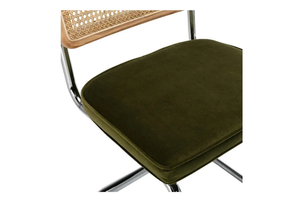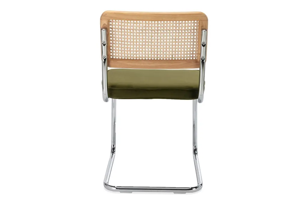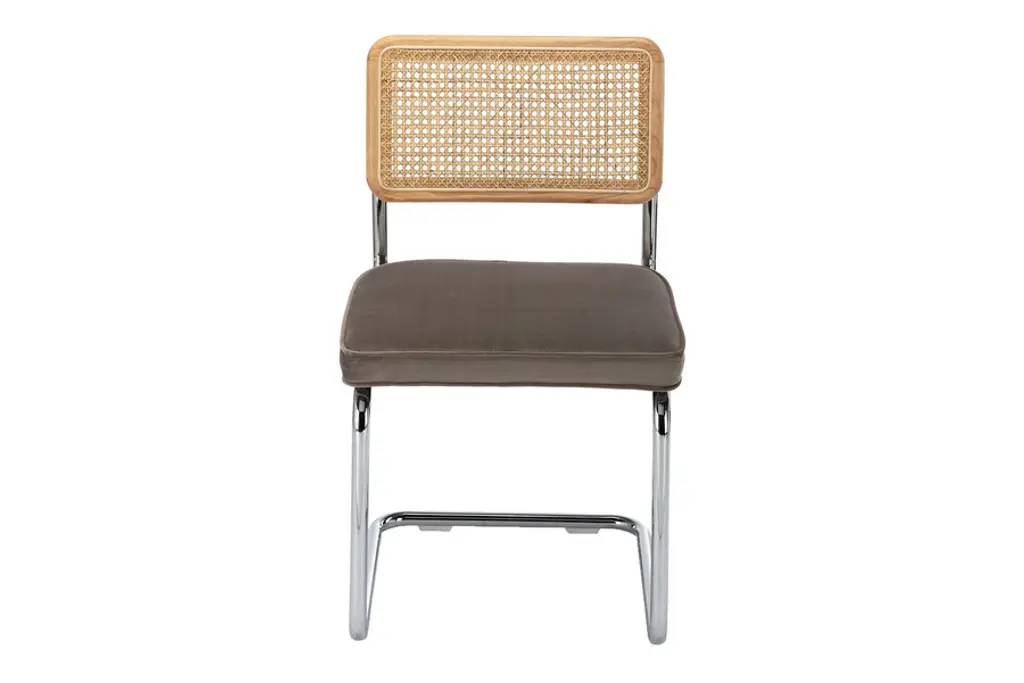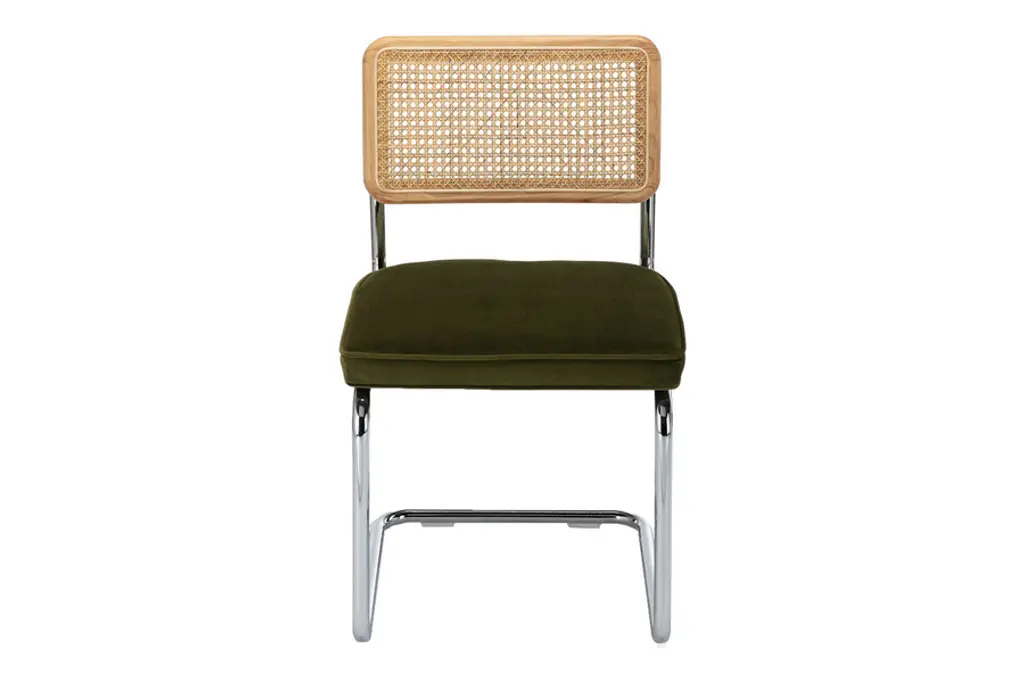 Incredible comfort with breathable details, the Hadley Velvet Dining Chair (Set of 2) is a retro contemporary variation on other multi-material seats. Its perforated cane wood backrest is flexible and strong for long-lasting, daily use. A sturdy sled metal base uniquely complements the soft velvet upholstered seats.They come in a variety of colors to meet your design needs. Made using stainless steel, wood and velvet, this is one impressive dining chair.