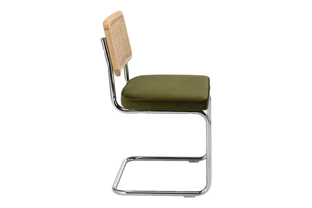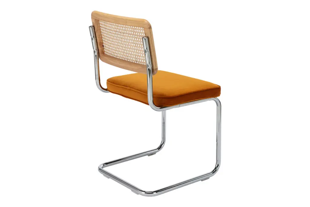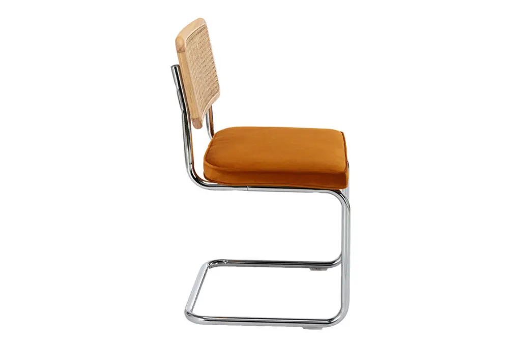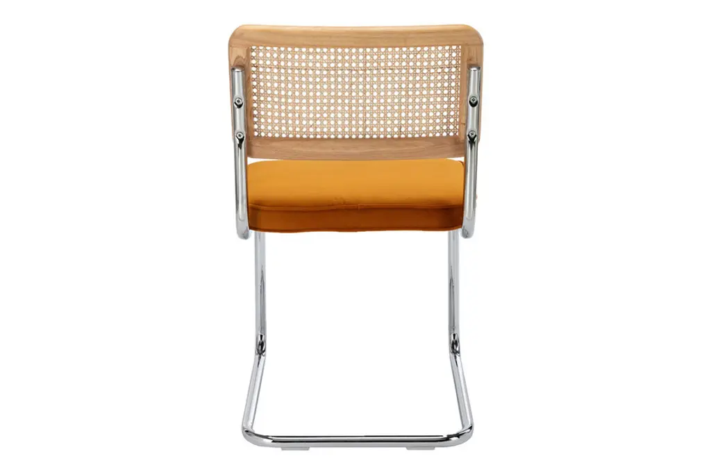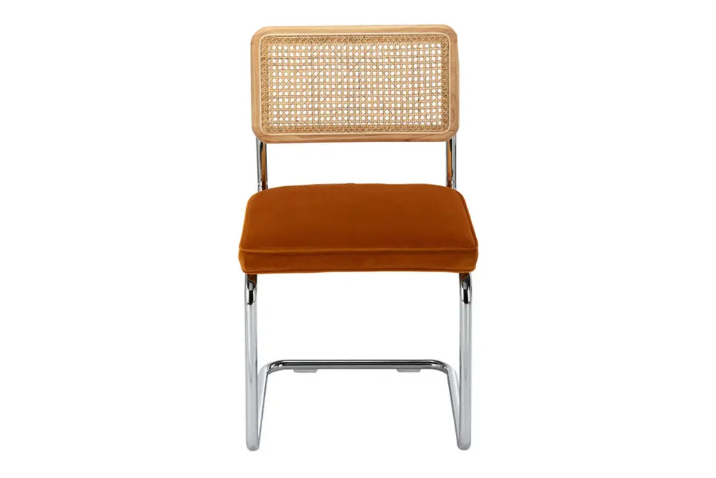 Incredible comfort with breathable details, the Hadley Velvet Dining Chair (Set of 2) is a retro contemporary variation on other multi-material seats. Its perforated cane wood backrest is flexible and strong for long-lasting, daily use. A sturdy sled metal base uniquely complements the soft velvet upholstered seats.They come in a variety of colors to meet your design needs. Made using stainless steel, wood and velvet, this is one impressive dining chair.