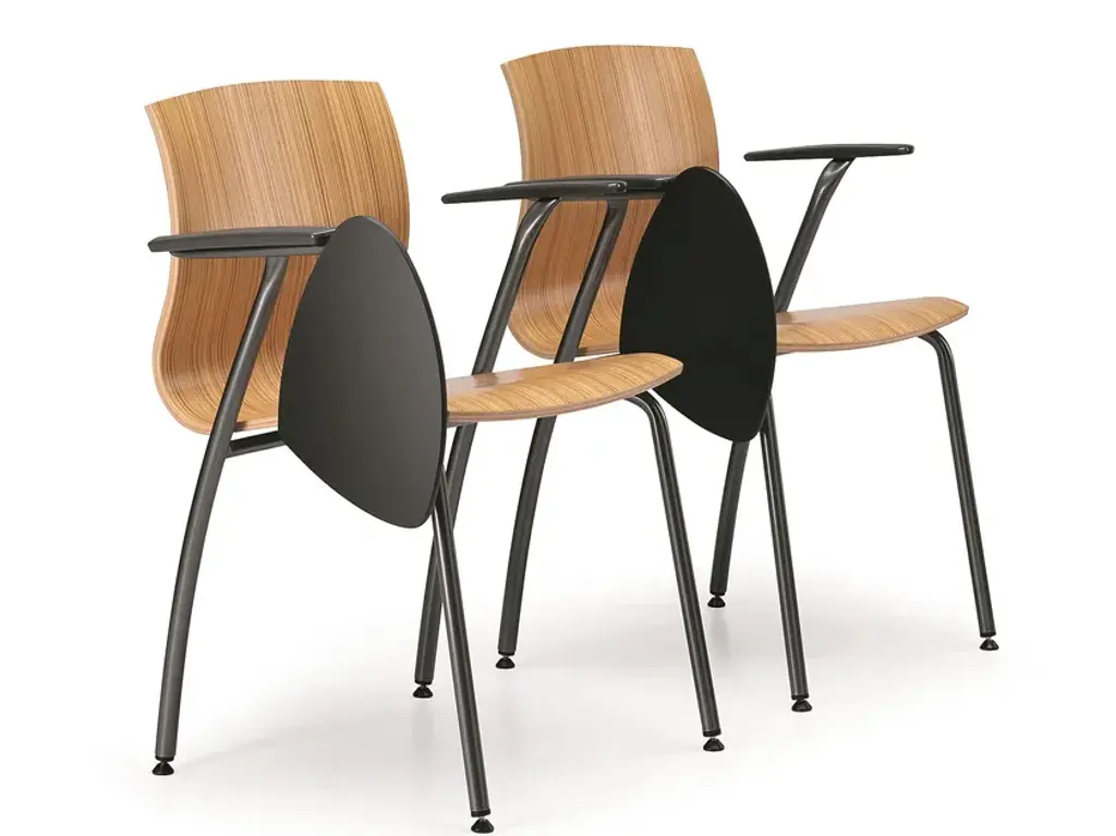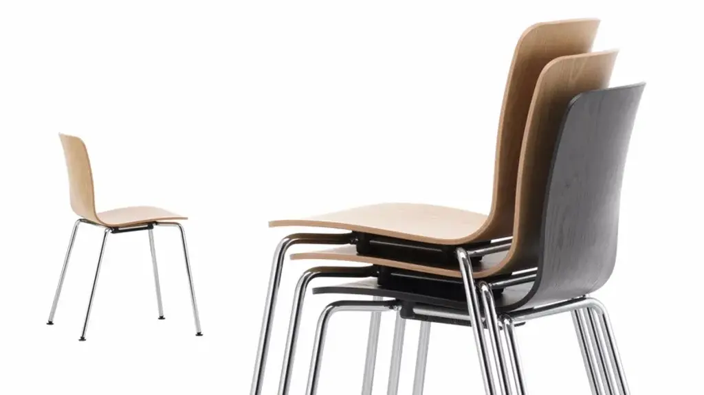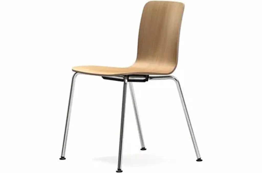 HAL Ply Tube Stackable- Seat shell: plywood.- Base: stackable four-legged tubular steel base, chrome-plated finish. Up to 6 chairs can be stacked on the fl oor, up to 15 chairs on a stacking trolley.HAL is Jasper Morrison's interpretation of a shell chair in the tradition of the Plastic Chair by Charles and Ray Eames, whose variety of different bases enables versatile use – from dining tables to meeting rooms, from bars to auditoriums. HAL is now also available in the version HAL RE with seat shells made of recycled plastic – as side chairs or armchairs.The chair bases exist in metal or wood, on castors as studio models or in high versions for bar stools and as a beam solution for waiting zones.These different base options can be combined either with a seat shell in plastic (HAL and HAL RE) or plywood (HAL Ply), or with a lightly padded shell covered in fabric (HAL Soft).The recycling material for HAL RE stems from Germany's 'Yellow Bag' (Gelber Sack) collection of household waste, which primarily consists of used packaging. Utilising this recycled material instead of conventional plastic generates fewer climate-damaging emissions and also significantly reduces energy consumption.Due to the composition of the recycled material, the different colours are interspersed with tiny specks of pigment. The colour white cannot be implemented in the new material at the moment and will follow as soon as technically feasible. The HAL RE seat shell can also be 100% recycled at the end of the product's life.When destined for use in large numbers in auditoriums, multipurpose rooms, training areas etc., HAL RE can be ordered with stackable bases, optional row connectors and seat numbering elements, as well as with a stacking trolley.The comfort of the pleasantly flexible plastic or wooden shells can be further enhanced through the addition of seat cushions or seat upholstery – or by opting for HAL Soft with its full upholstery.In the versions with a plastic shell and powder-coated base, HAL is also suitable for use in outdoor settings.The related HAL Armchair rounds out the HAL family.