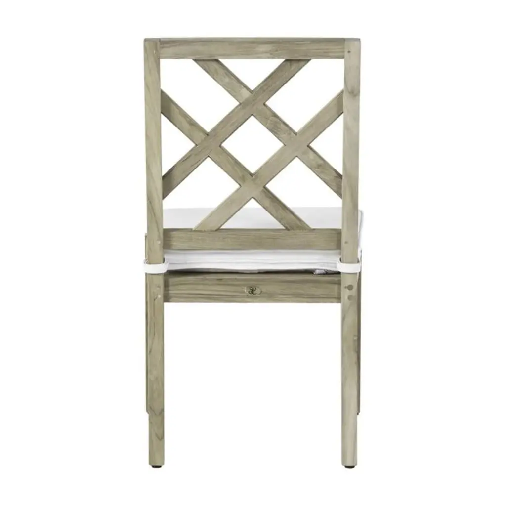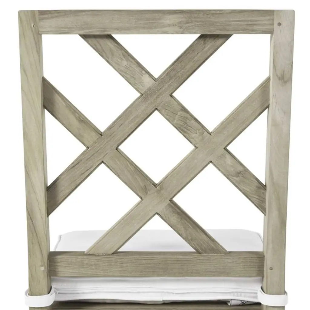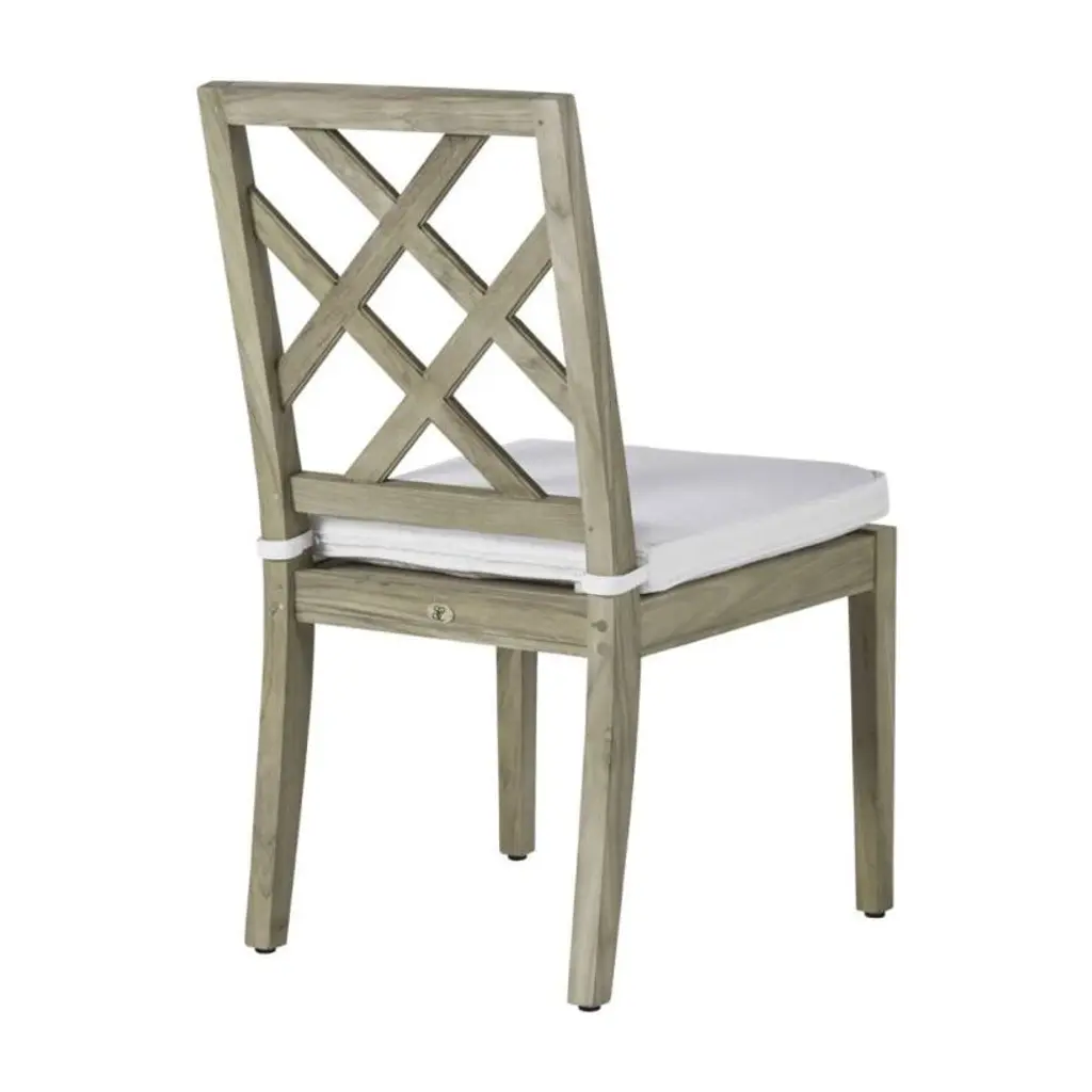 The Haley Side Chair is a classic. Made of durable, marine-grade teak, it features a traditional latticework back and finely detailed armrests. The simple elegance of the Haley armchair makes it a perfect choice for any outdoor dining room. This item is designed to be enjoyed either with or without a cushion. Please designate your choice in the below "Select a Cushion" dropdown.
