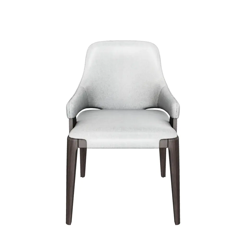 Designed with the idea of welcoming you with open arms, the Hamilton Side Chair warmly welcomes sitters with its cradling, upholstered seatback angled slightly for a relaxed repose. It features a seat and seatback upholstered in your choice of premium imported fabric or buttery soft full-grain semi aniline leather, while its curved form is molded to fit the organic curves of the body. It's further defined by classic rounded legs and frame which are expertly crafted from solid ash wood.
