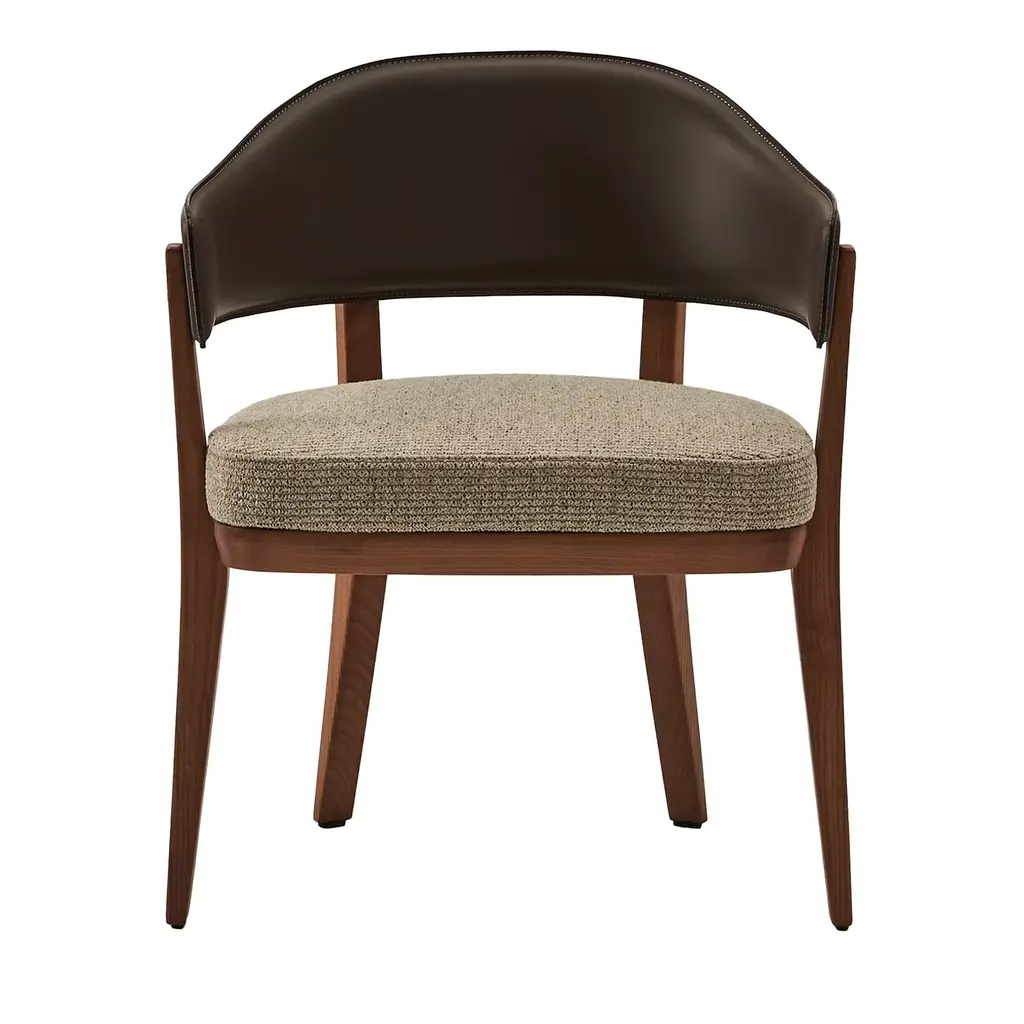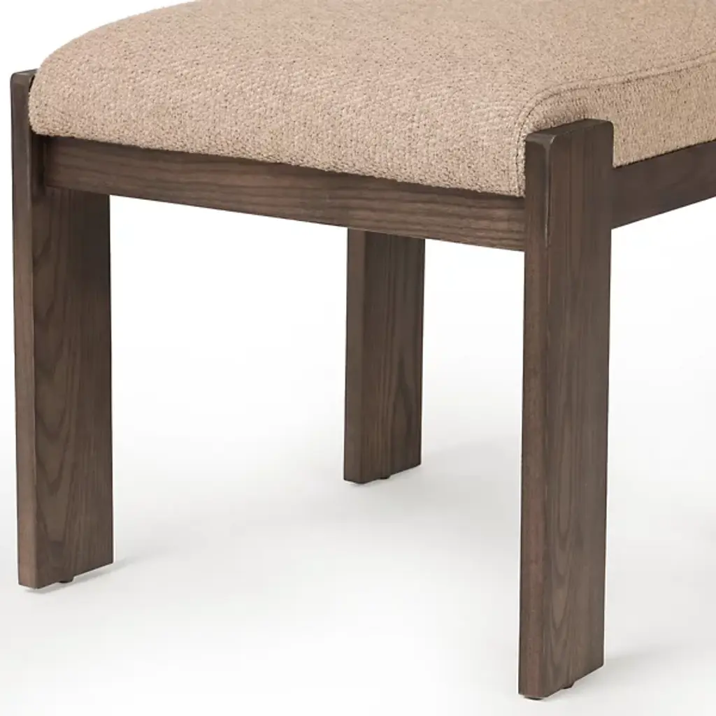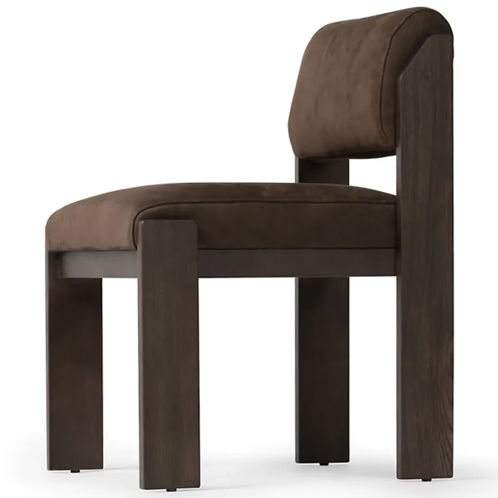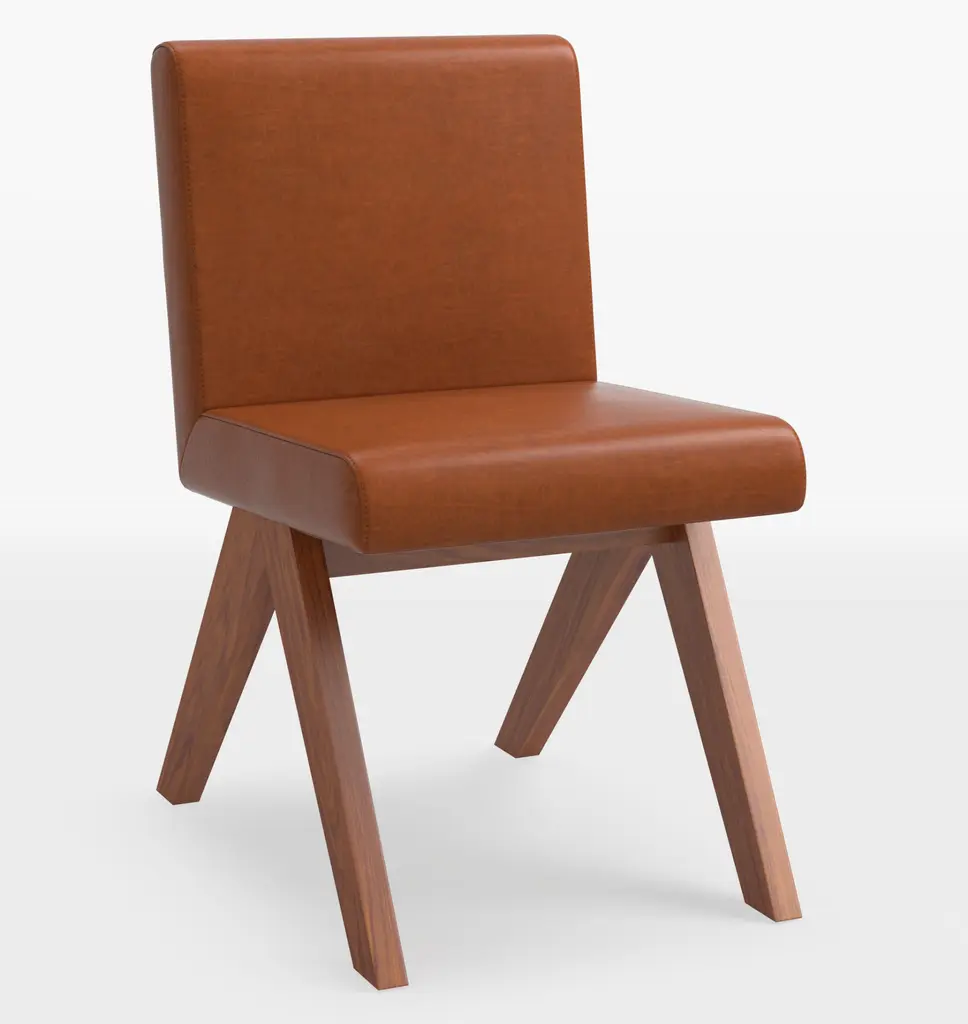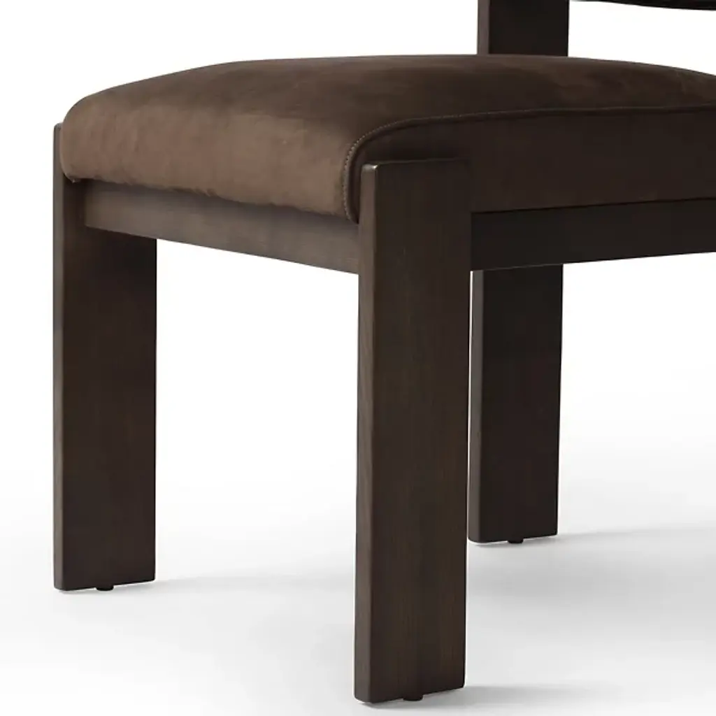The Hamlet Dining Side Chair from Four Hands features a wide stance, instantly establishing it as a classic. Crafted with solid ash outset legs—standard rectangular front legs and angled back ones—it frames a smoky brown top-grain leather seat and back. The unique leg design adds an architectural flair, blending both style and comfort. The Hamlet Dining Chair is a perfect addition to any dining space, offering elegance and a timeless appeal.