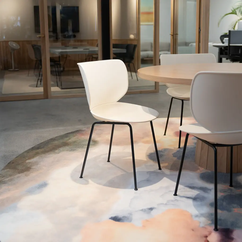 Hana means “blooming” in Japanese and Moooi’s side chair unfolds like a flower to assure unparalleled comfort as well as expedience in sets of 2 or 4. With a stackable chrome base or matte black metal, designer Simone Bonanni’s encompassing backrest provides functional support and flexibility without compromising on aesthetics.