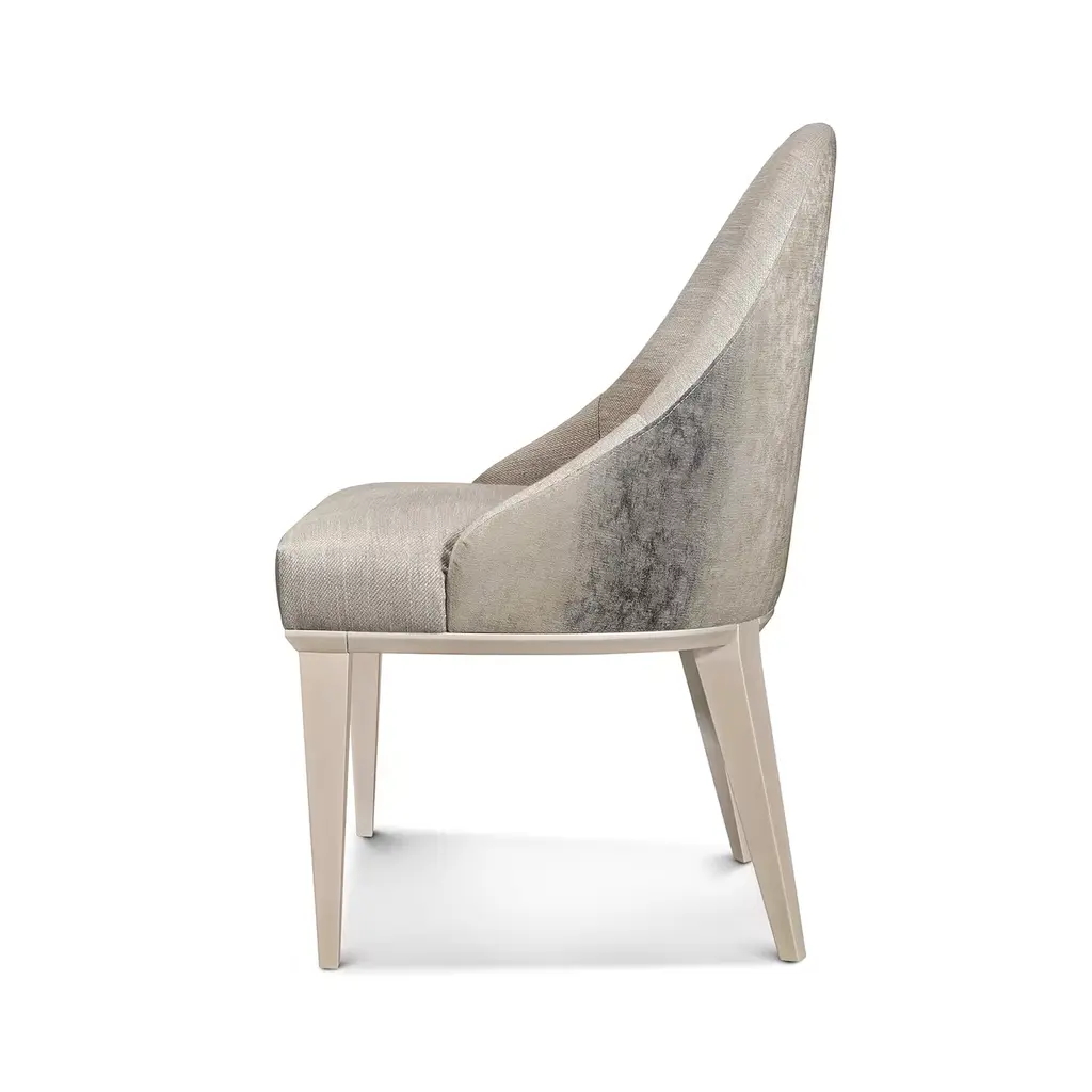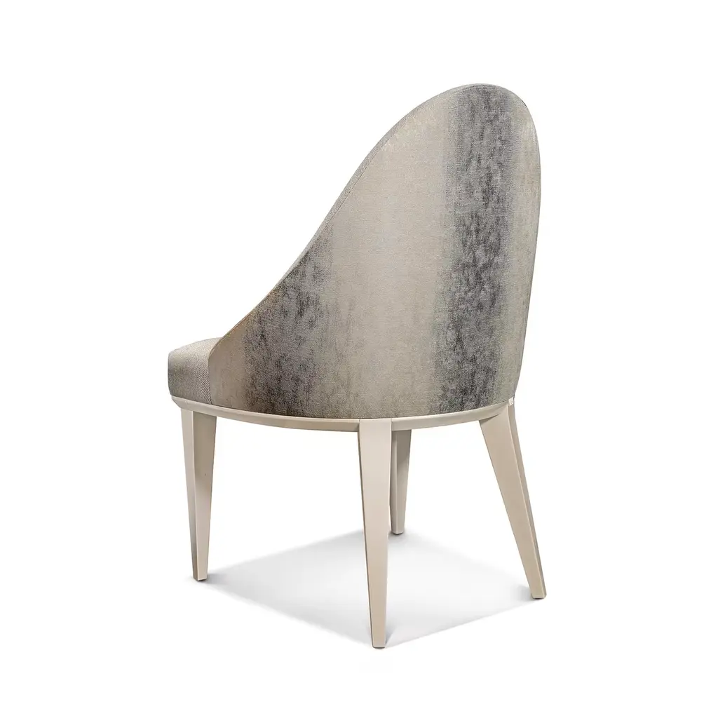 The Hanami Soft Style Dining Chair is the embodiment of fine dining at home. On a solid wood structure, the chair is given a high gloss finish, shown here in Pearl Champagne. The seat is then padded and upholstered in the material of your choice, with a selection of faux and natural leathers available.