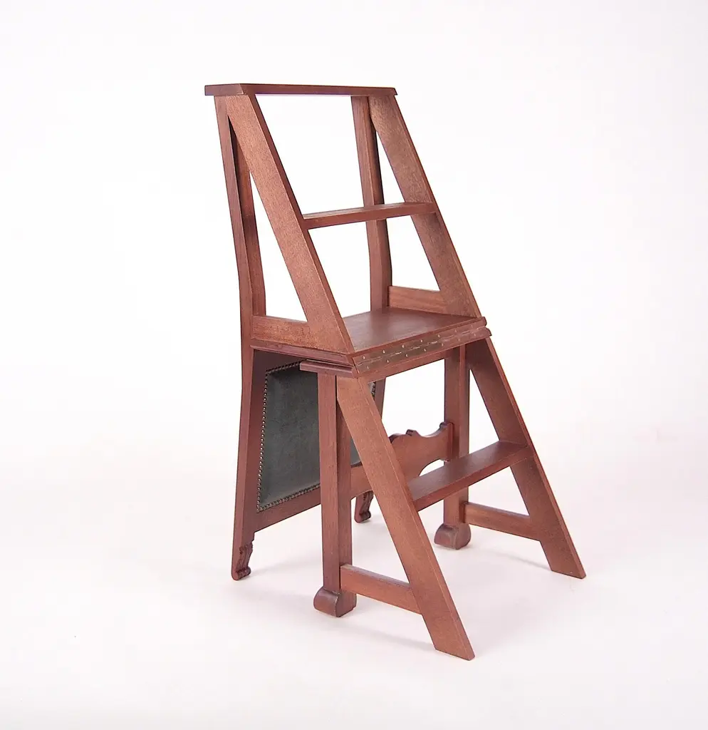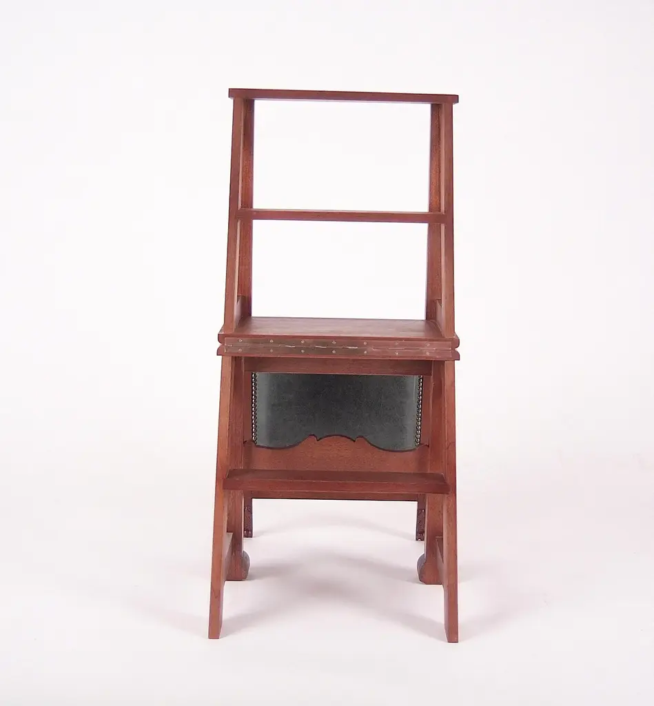 Alder or Mahogany Handmade Ladder Chair. Very useful piece of furniture for libraries, kitchens or dressing rooms. No need of a small ladder to reach a higher place. And yes, the backrest is covered with leather.