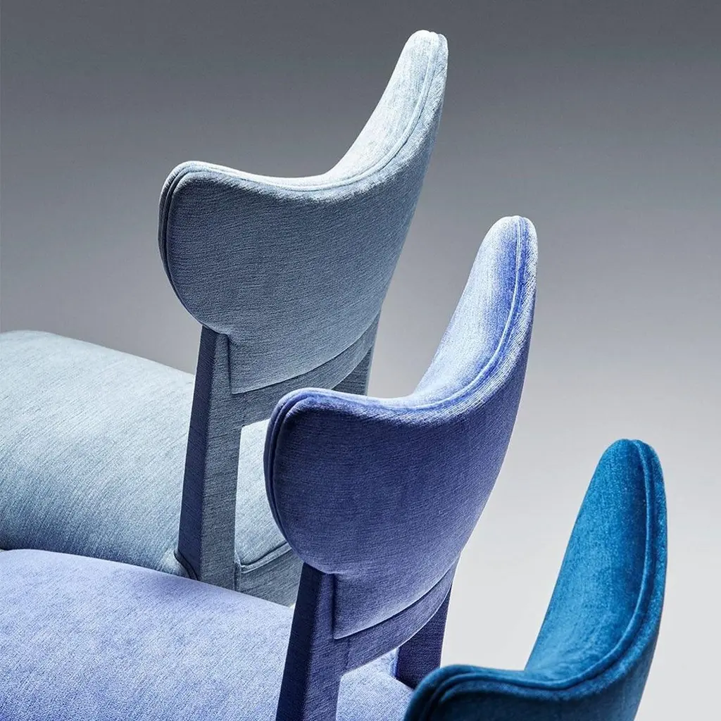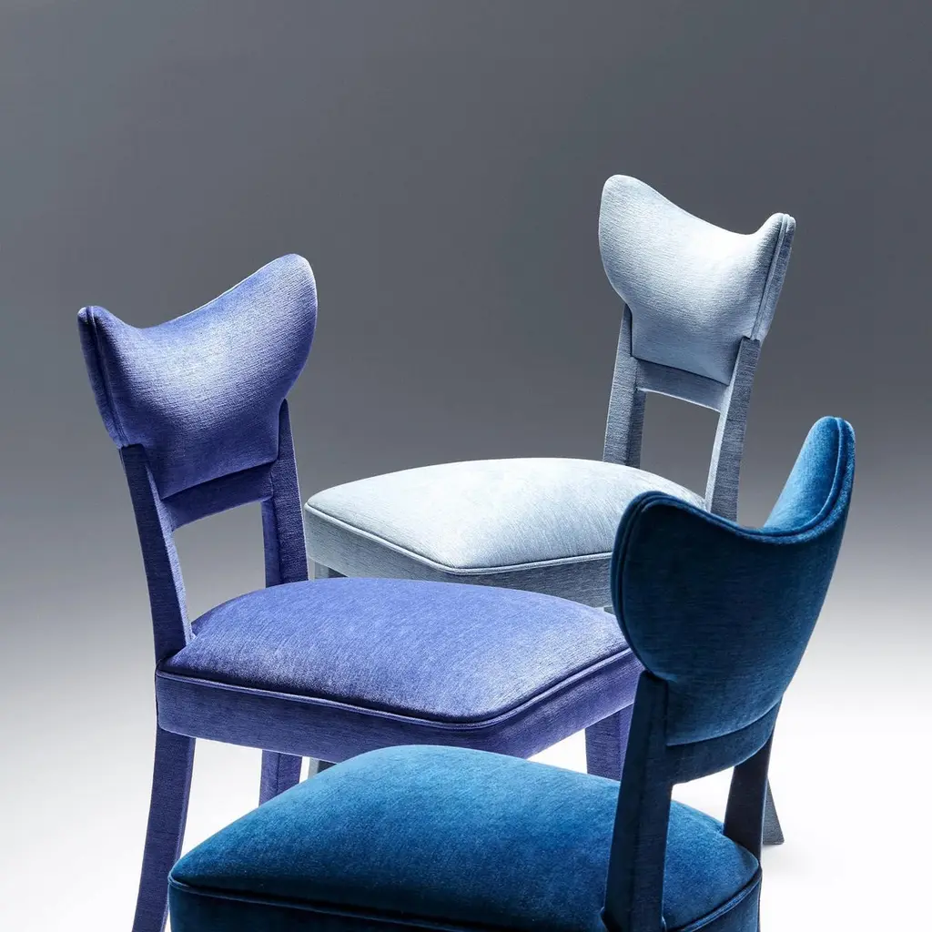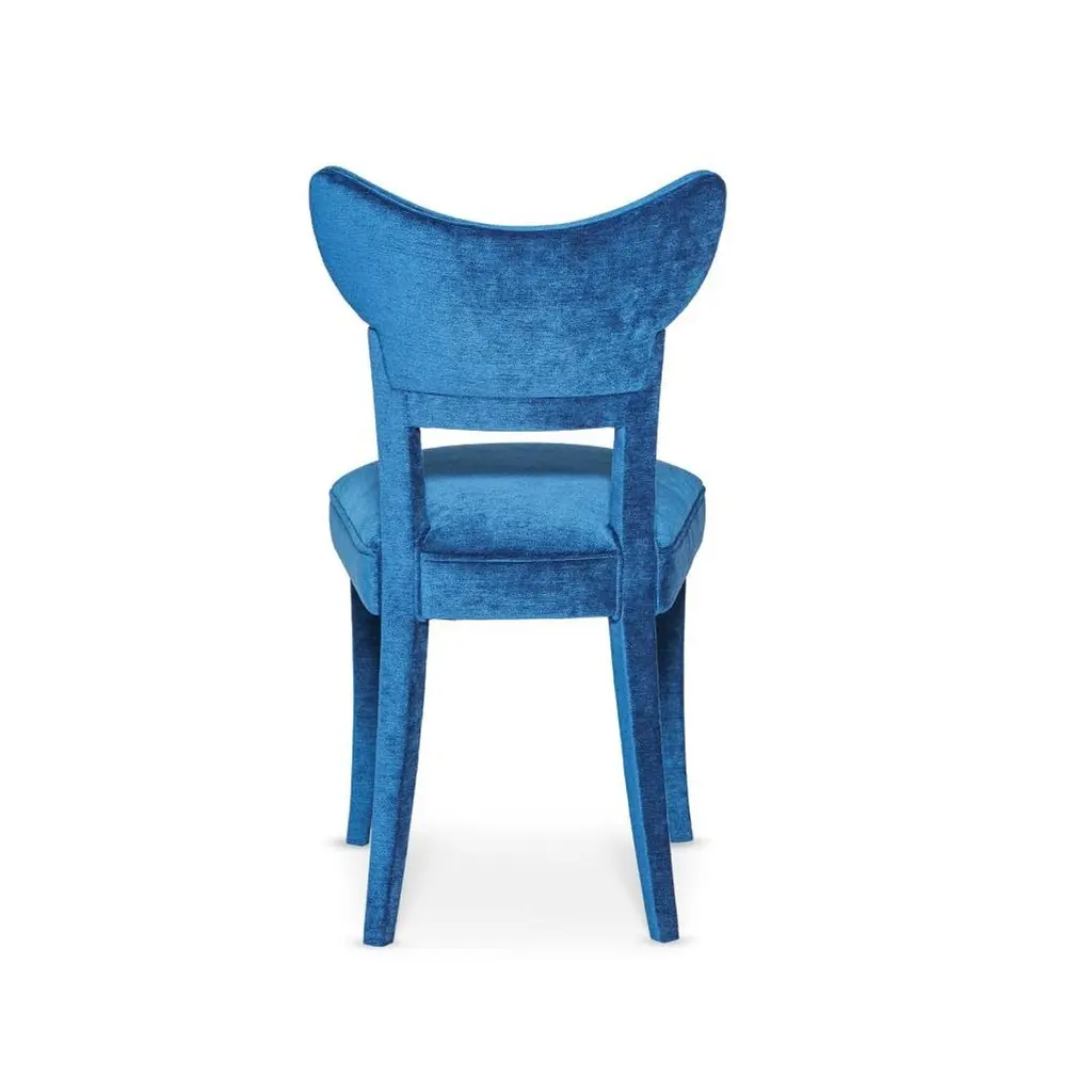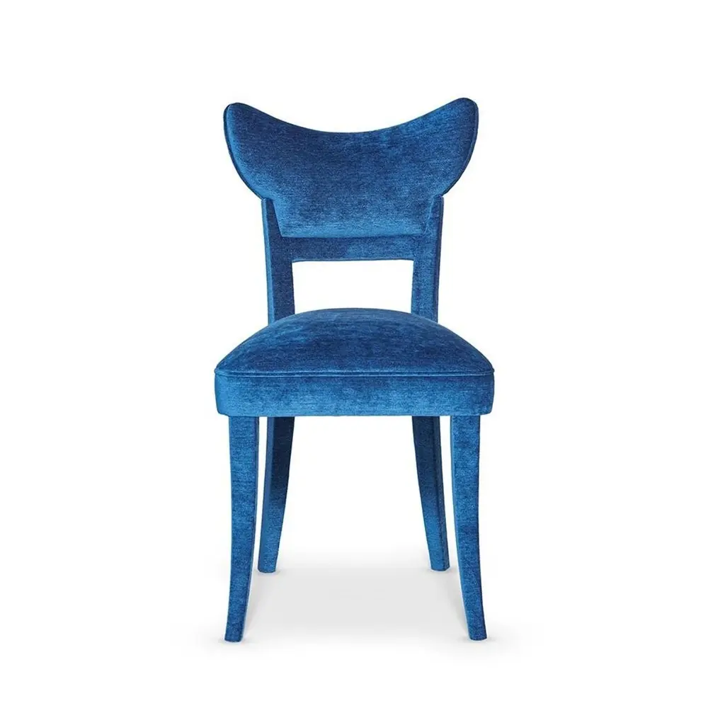 This dining chair is elegant, mysterious and charismatic. Its bold retro lines and soft seat make it an effortless head turner.Upholstery: Velvet Legs: Available upholstered, Rosewood, Ebony or Walnut veneer, Wengé stain or lacquer in all RAL colors, in matte or gloss.Frame in solid wood.Handmade in Europe.We do our best to expedite production and to ship and deliver product within the listed lead time, however current lead times might be longer due to global shipping backlog and delays. These delays are out of our control and cannot be a reason to cancel an order.Our pricing includes all costs for international shipping to the U.S., as well as duties and customs clearance fees. Please be aware that local delivery within the U.S. is not included. We offer white glove, front door, and warehouse delivery options. For shipments outside the U.S., kindly reach out to us for a detailed quote.
