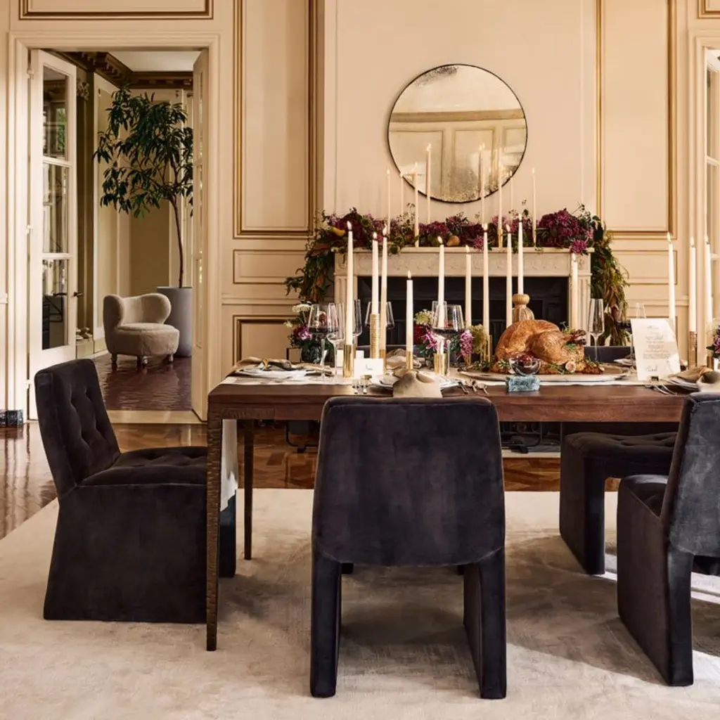 Lustrous velvet dining chair by Caleb Zipperer evokes classic Italian designs of the 1960s and 1970s. Upholstered in soft brown velvet, blind-tufted cushions curve gently for a tailored yet supportive seat. CB2 exclusive.