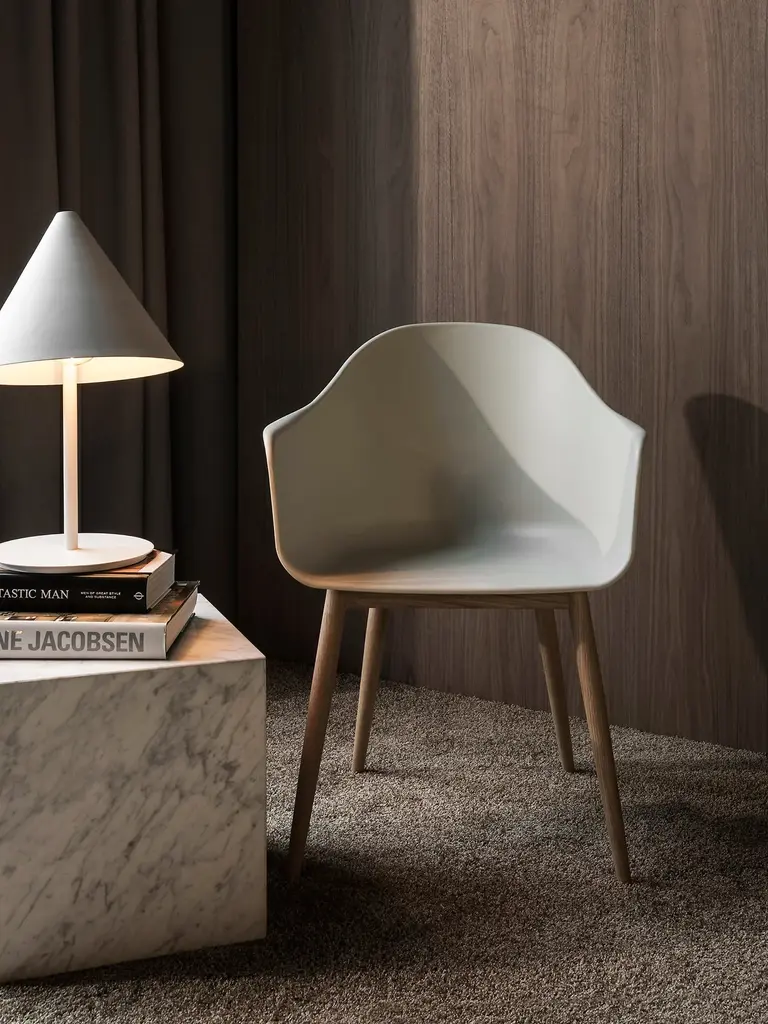 Conceived during the design process for Audo’s new creative destination Audo Space located in Copenhagen’s thriving Nordhavn (Northern Harbour) area, the Harbour Chair is the result of fulfilling a variety of needs (among others) comfortable versatility. Designed specifically for Audo Space, the dining chair is ideal for anything from restaurants, conferences, offices, or in the comfort of one’s own home. A hybrid space that mixes office, showroom, café, co-working and event space in One, Audo Space required a chair that could suit a range of purposes. Finding a perfect balance between geometry and organic shapes, the shell’s armrests bend outwards for maximum support, as does its high backrest, providing not only comfort, but also an elegant and slim appearance that will appeal to any discerning design aficionado.