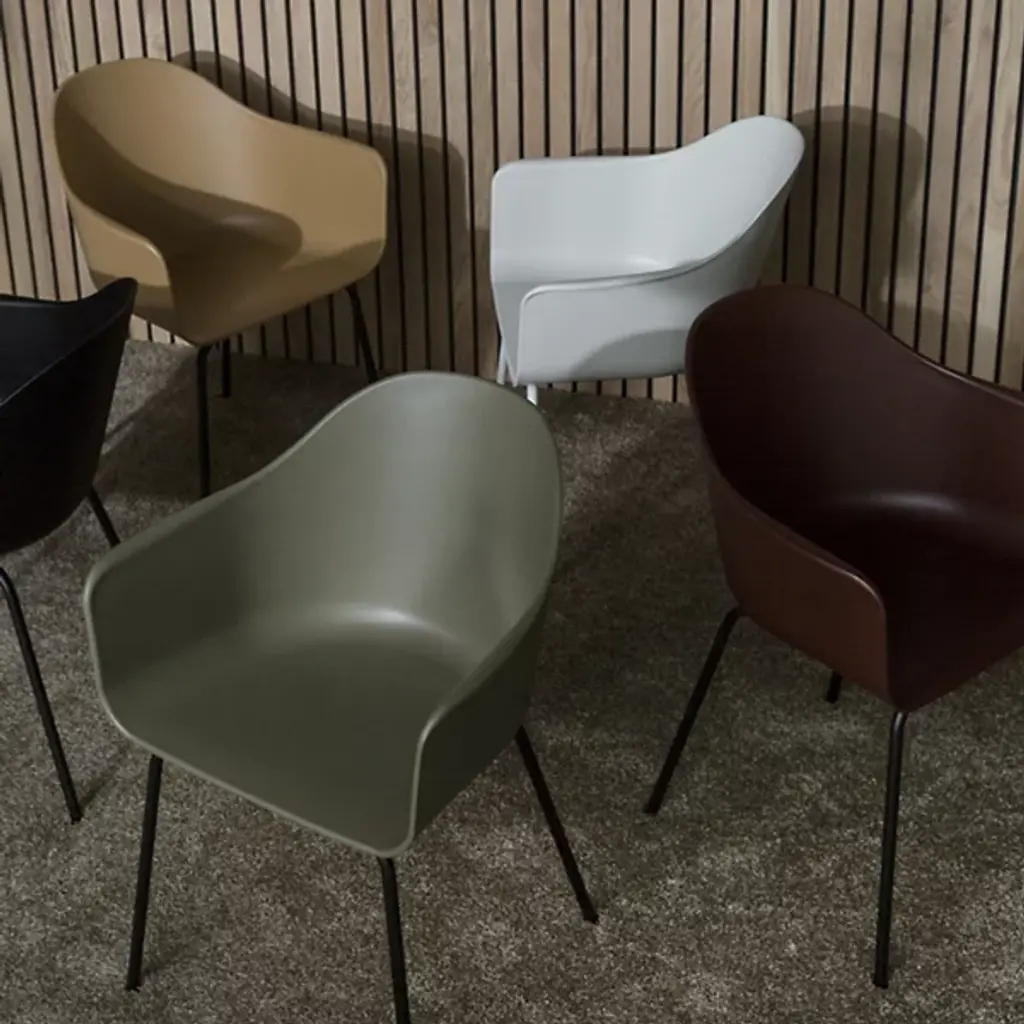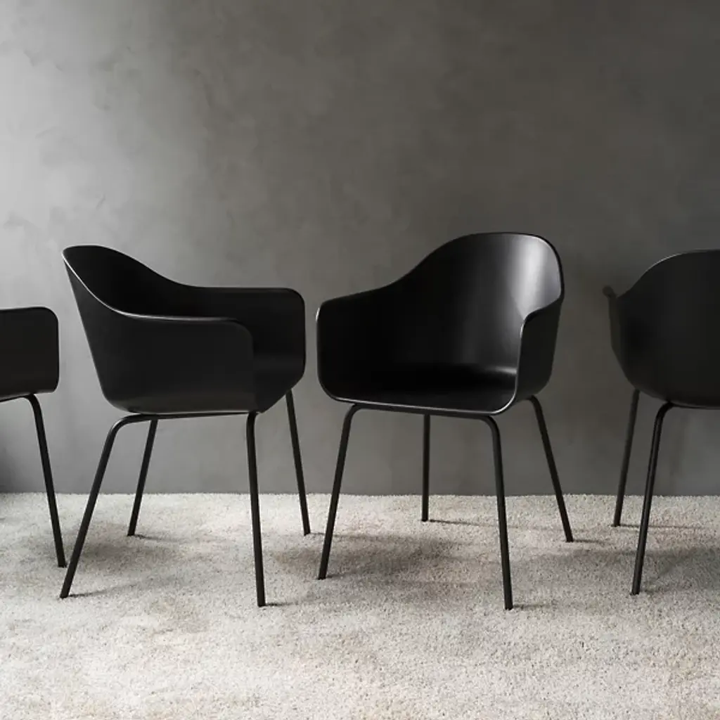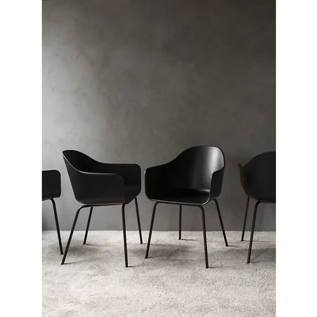 The Harbour Side Chair, Steel Base from Audo Copenhagen, formerly Menu, complements spaces with a contemporary appeal. Designed for the hybrid Audo Space in the Nordhavn neighborhood of Copenhagen, it is at once fancy and formal, mixing comfort with versatility. Each seat is constructed from long-lasting materials with a smooth style, and rises from a slim powder-coated steel base, securing an ergonomic shell-style seat above. The solid seat contrasts well with the open space of the base to provide encompassing comfort with contemporary appeal.