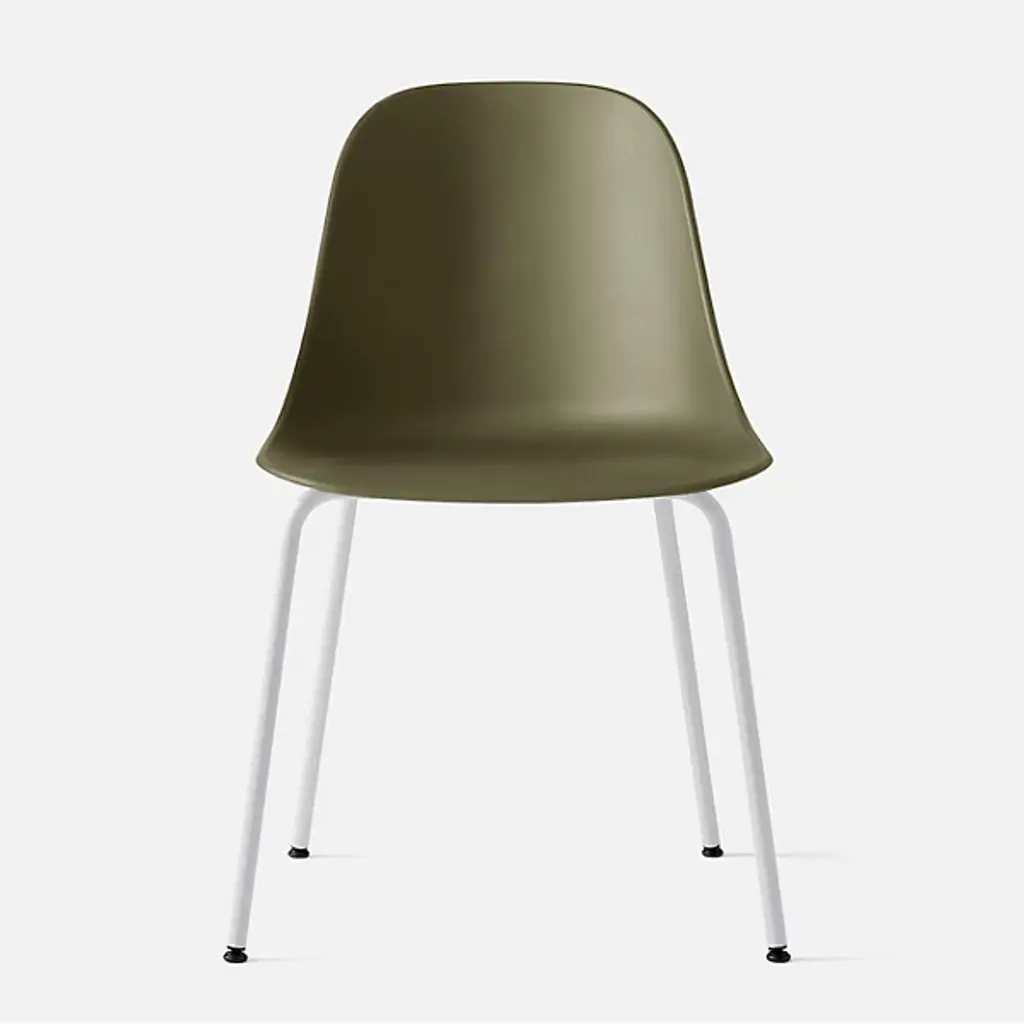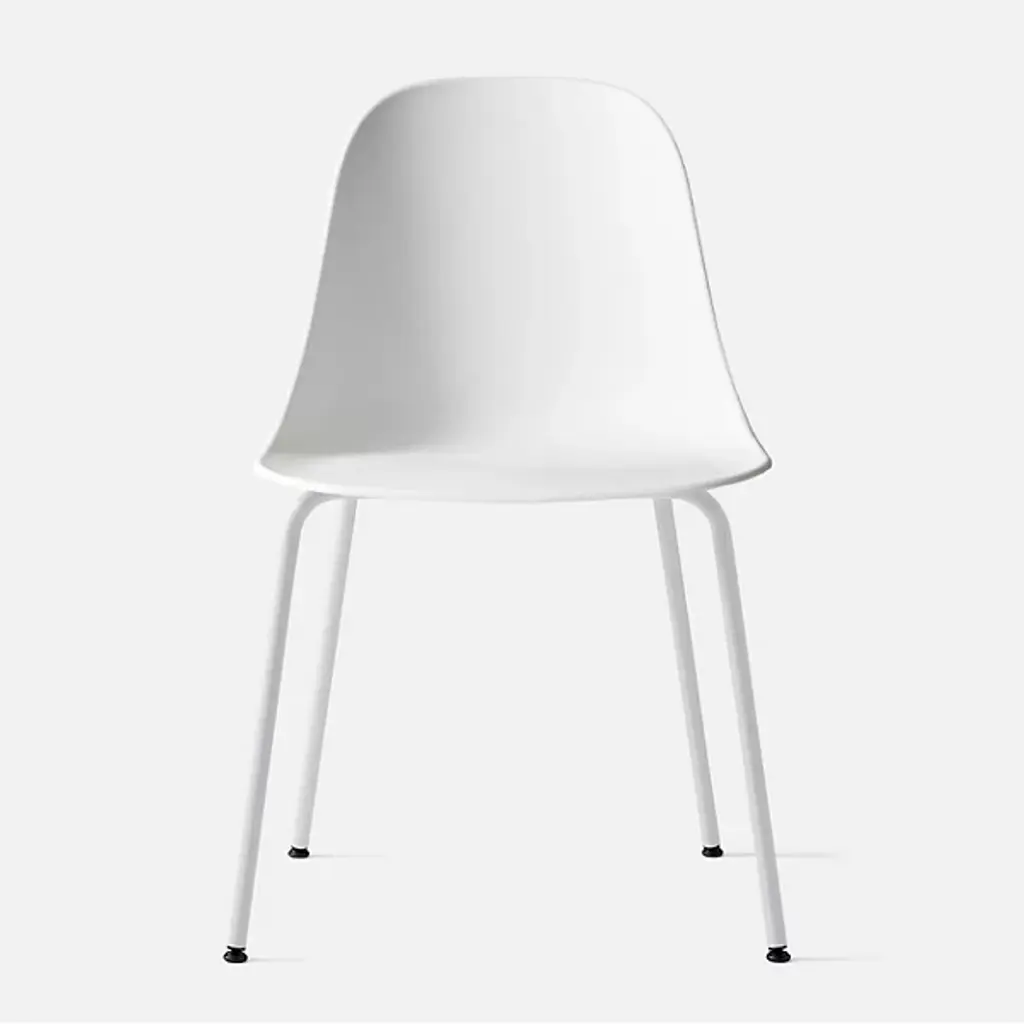 Beautiful, timeless simplicity that is paired with a dose of comfort. The Harbour Side Chair, Steel Base by Audo Copenhagen, formerly known as Menu, embraces the minimalistic and Scandinavian style of Norm Architects and fits effortlessly into compact spaces and under tables for a stylish addition to any room. Complementing an array of décor styles, a sculptural, ergonomic shell is balanced on a simple, tapered set of legs for a strong and welcoming profile. This side chair is composed of polypropylene and fiberglass that is supported by a powder-coated steel base. Pull this comfortable and smoothly crafted seat up for yourself or a guest and relax.