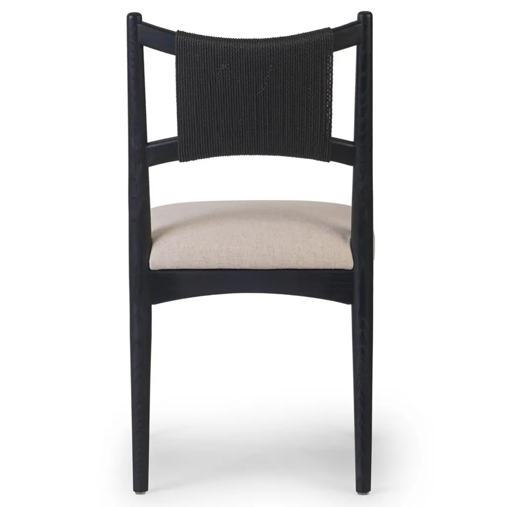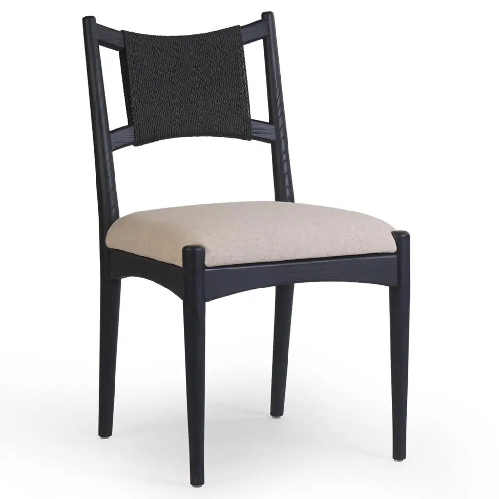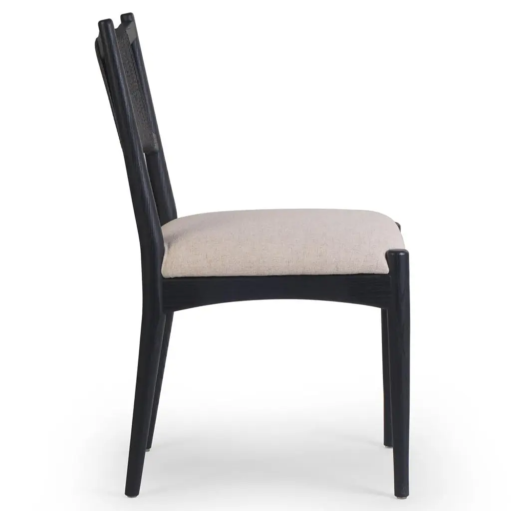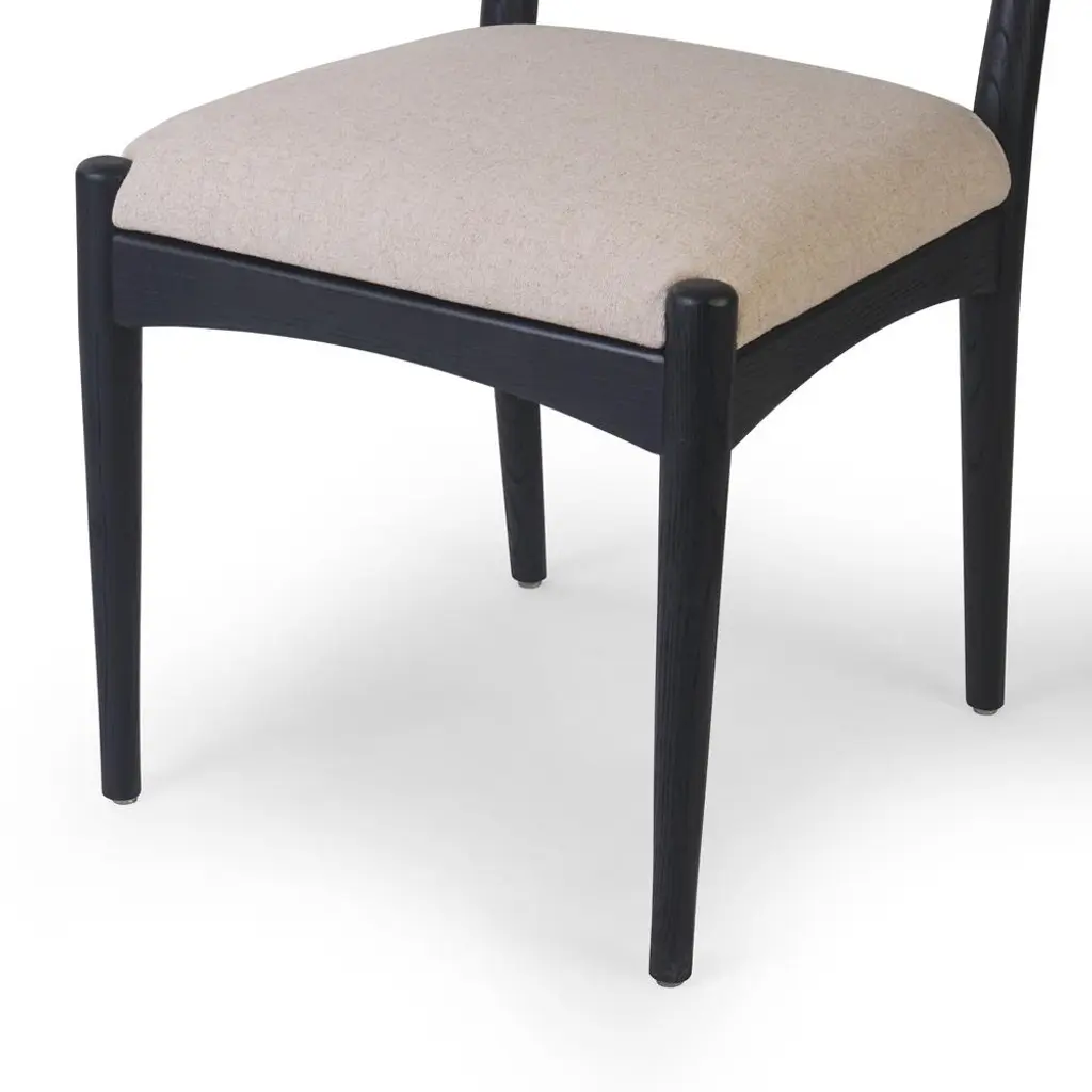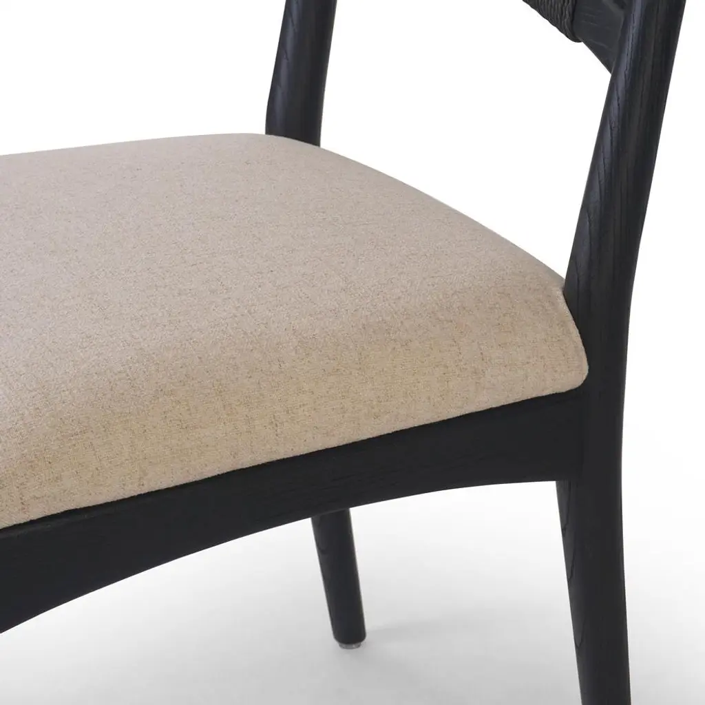 Harley Coastal Beach Beige Performance Linen Black Wood Dining Side Chair