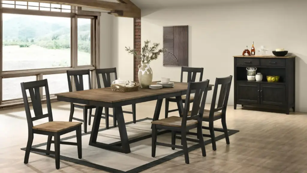 The Harper Dining group has family friendly solid wood construction. It's Transitional style blends simple lines with a striking two-tone finish. The Harper Dining group is tailored to fit in today's modern home with dining configurations designed to fit in small, medium and large spaces.