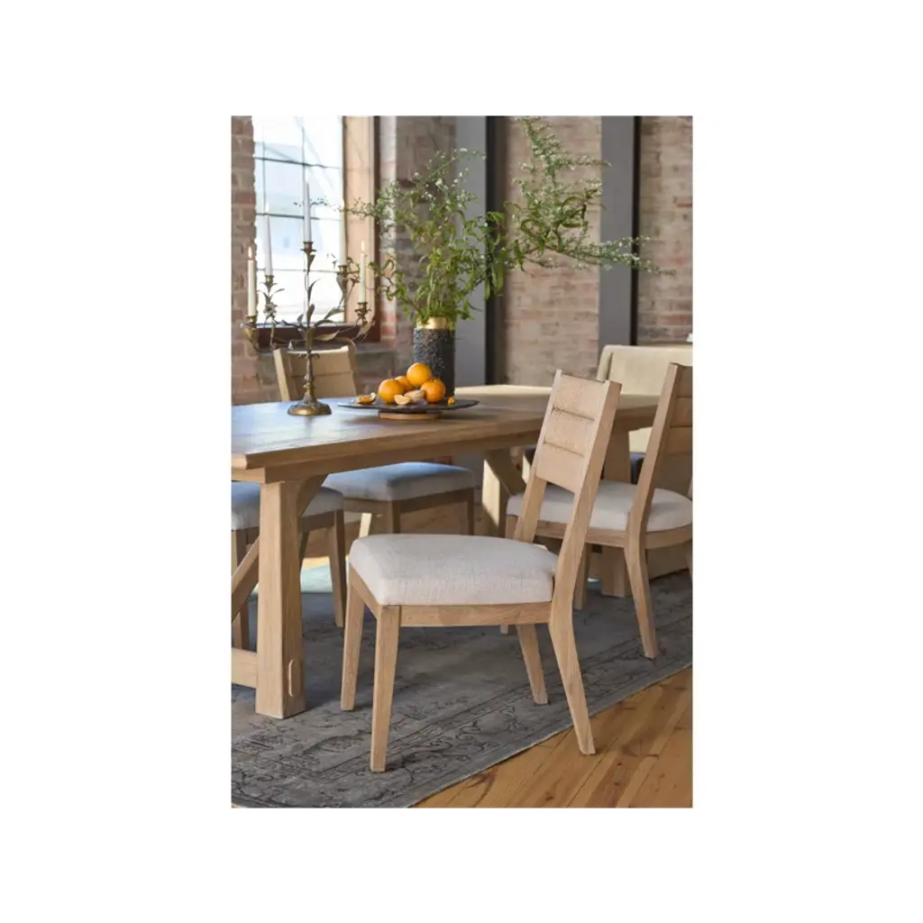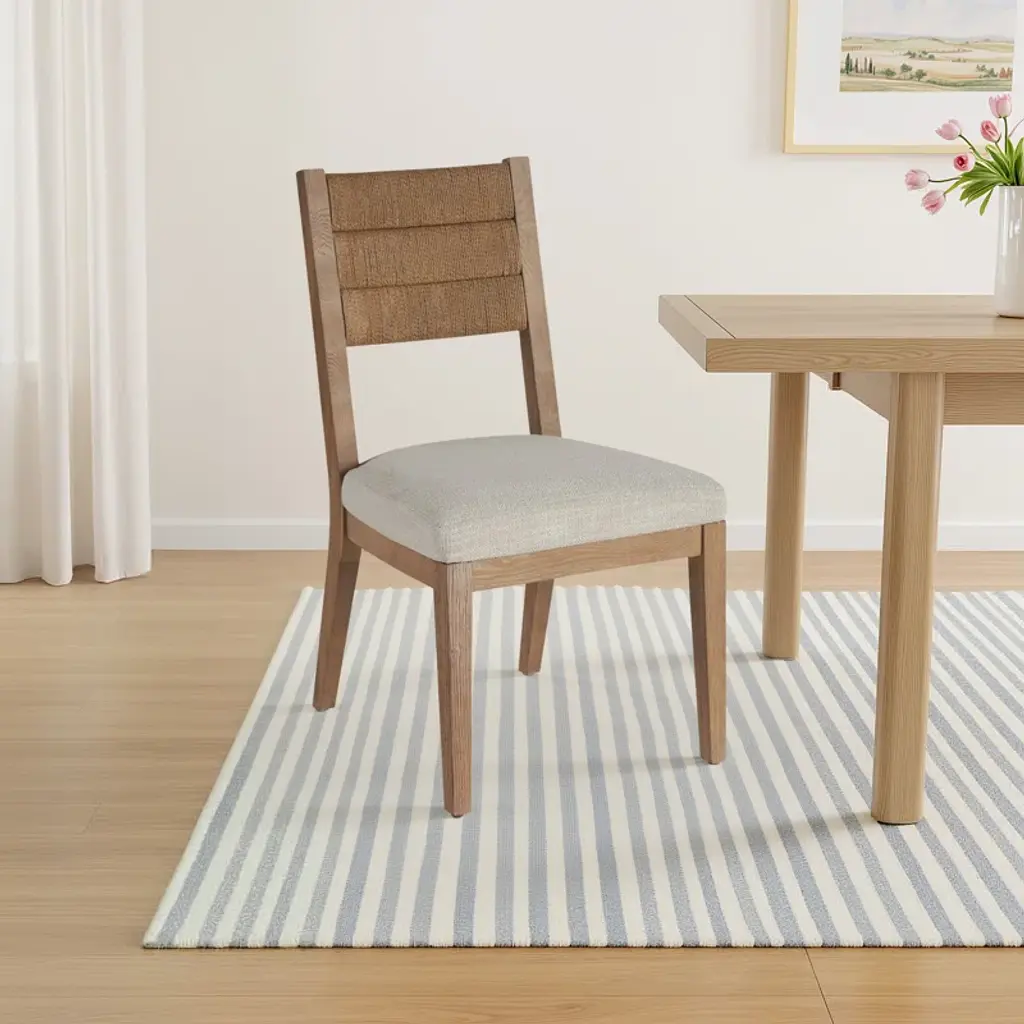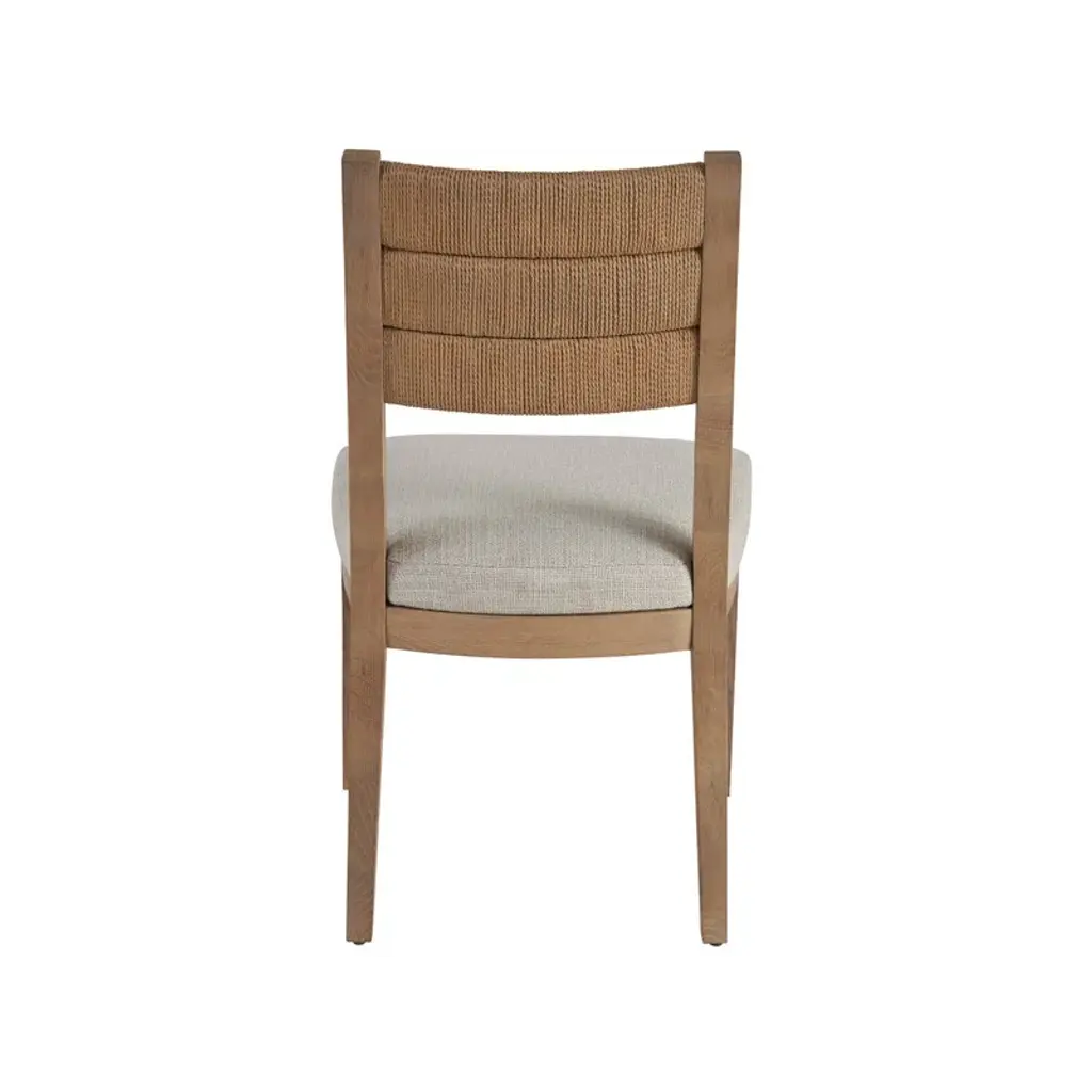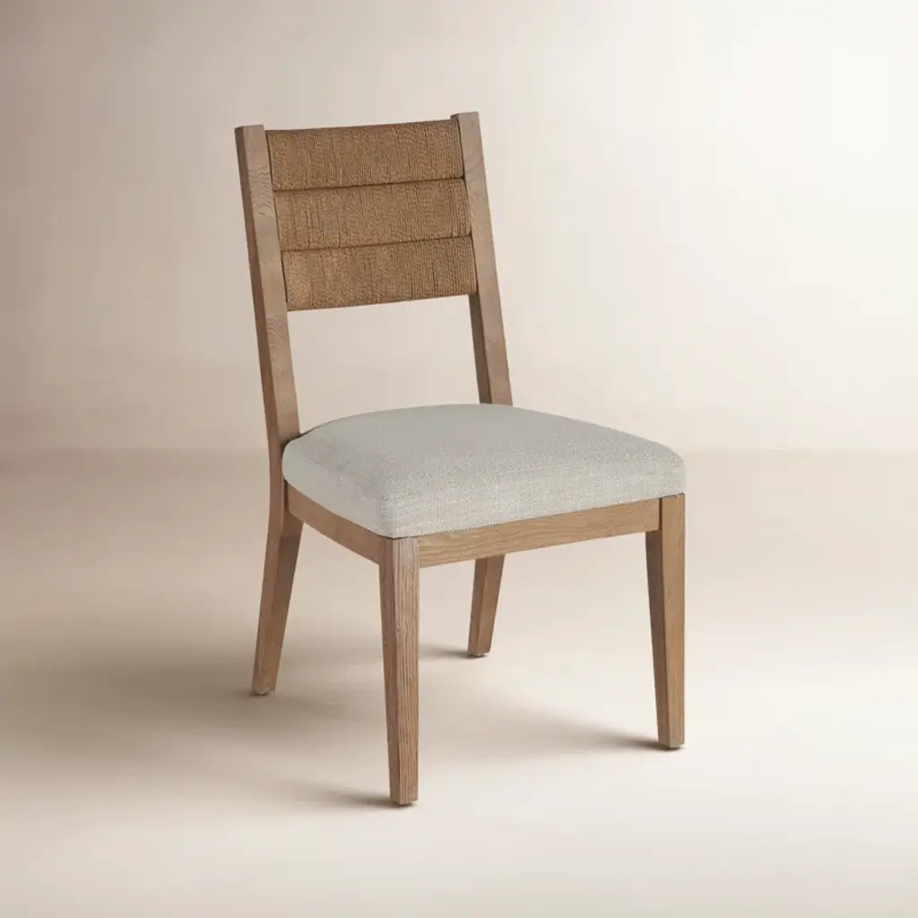 The Canyon Side Chair is a stunning example of modern design. Its Danish cord back and fabric seat offer a unique blend of textures and comfort. The wooden frame adds a touch of natural warmth, making this chair a captivating addition to any dining room or living room.