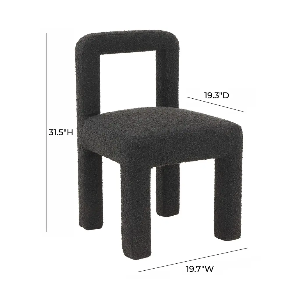 The modish Hazel chair features clean lines and either a textural boucle fabric or a patterned jacquard fabric to transform your dining room. Supported by a sturdy pine wood frame with plush foam seats for ultimate comfort, this chair is the perfect decorous yet practical piece that your dining experience needs!