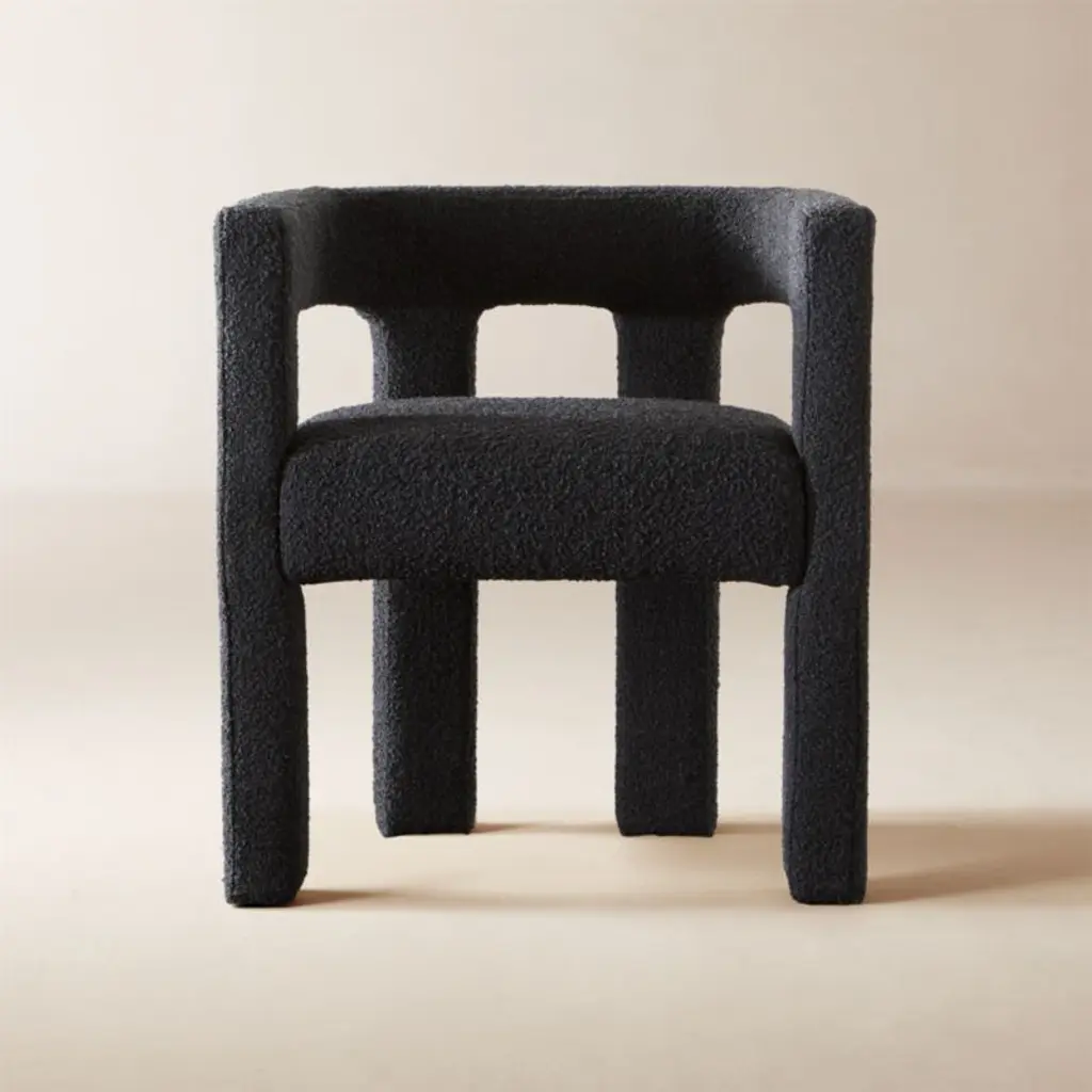 The modish Hazel chair features clean lines and either a textural boucle fabric or a patterned jacquard fabric to transform your dining room. Supported by a sturdy pine wood frame with plush foam seats for ultimate comfort, this chair is the perfect decorous yet practical piece that your dining experience needs!