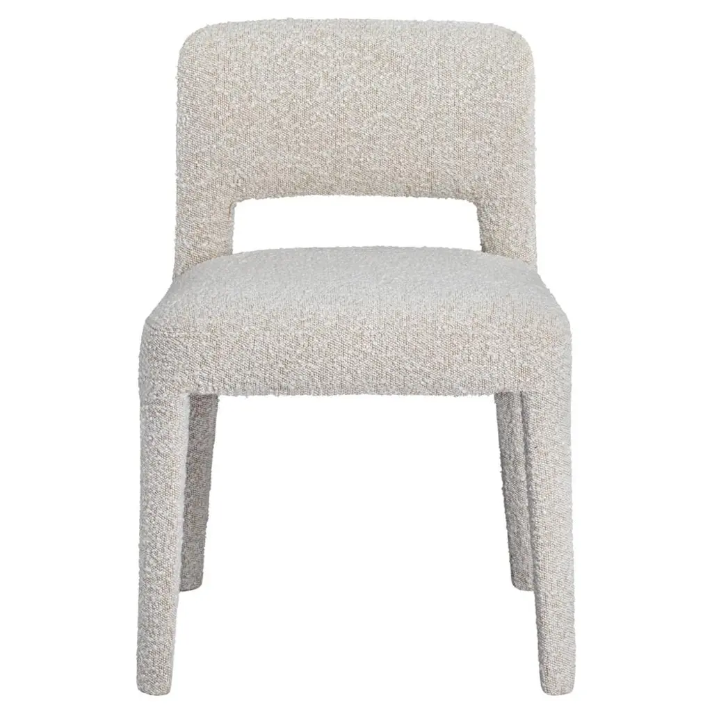 The modish Hazel chair features clean lines and either a textural boucle fabric or a patterned jacquard fabric to transform your dining room. Supported by a sturdy pine wood frame with plush foam seats for ultimate comfort, this chair is the perfect decorous yet practical piece that your dining experience needs!