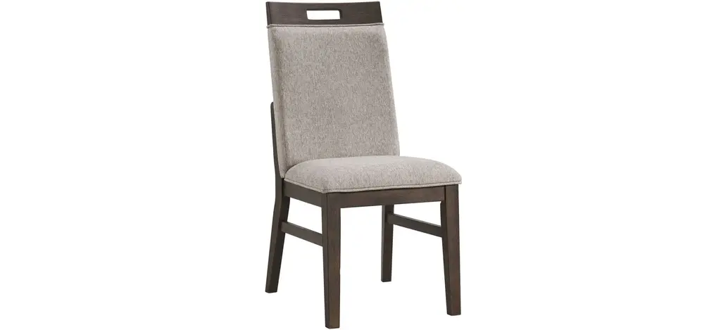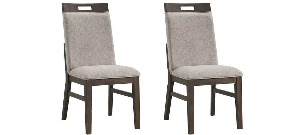 The Hearst Side Chair (set of 2) is created with oak veneer and solid hardwood, featuring an upholstered seat for extra comfort and durability.