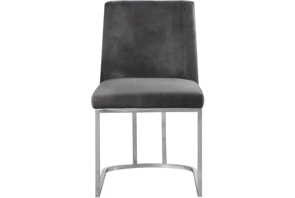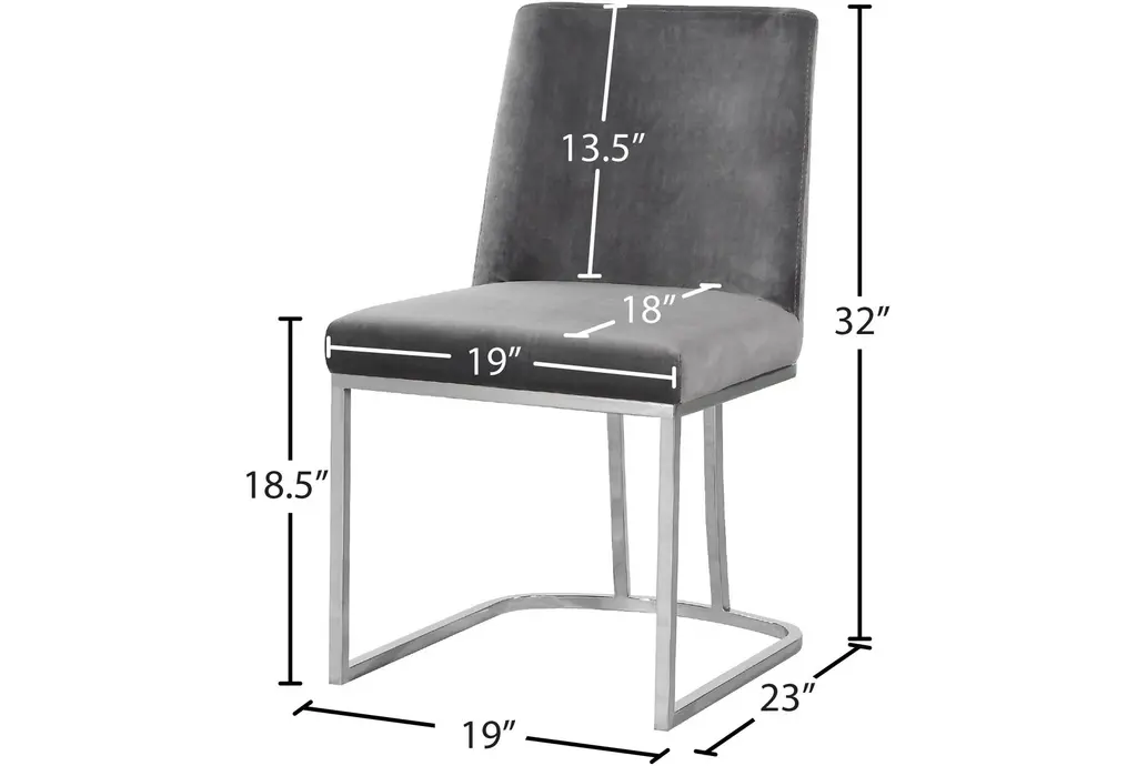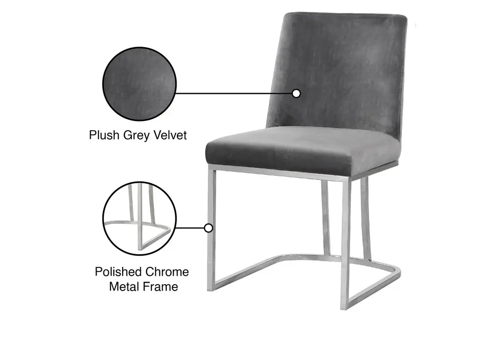 Heidi Grey Velvet Dining Chair With Chrome Finish Set Of 2