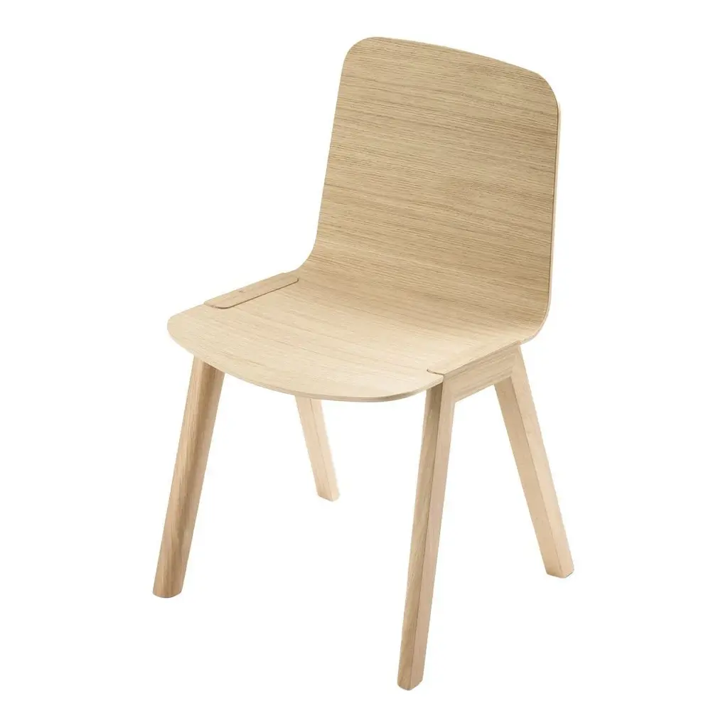 The Heldu chair has a solid oak construction. Finish is available for the shell in wooden oak.