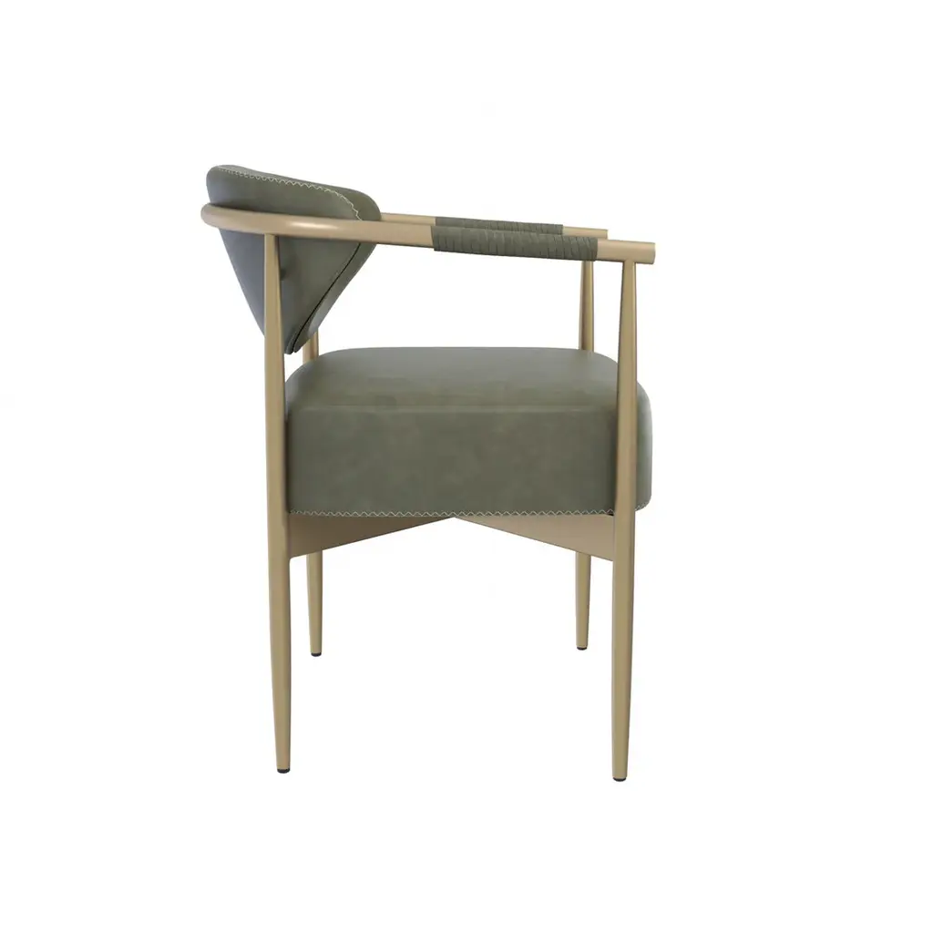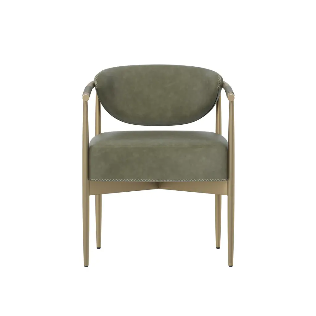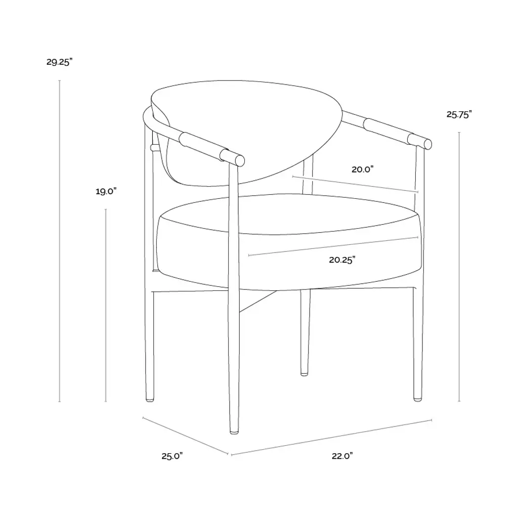 Indulge in the luxurious charm of the Heloise Dining Armchair from Sunpan. Every detail, from the faux leather upholstery to the powder-coated gold stainless steel, is designed for style and comfort. Visible stitching accentuates the smooth contours of this elegant chair. Crafted with faux leather, this chair adds a touch of sophistication to any dining space. Highlights