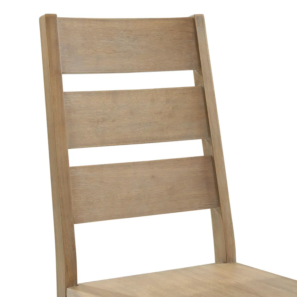Crafted of rustic wood with a tall ladder back, the Herald dining chair is an elegant addition to modern-farmhouse kitchens and French-country dining rooms. Featuring a contoured seat that is cozy without a cushion, this slat-back side chair comes in a durable, matching set. Versatile and sophisticated with on-trend transitional flair, this understated seat is an easy complement for a traditional or contemporary dining table.