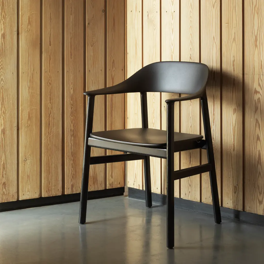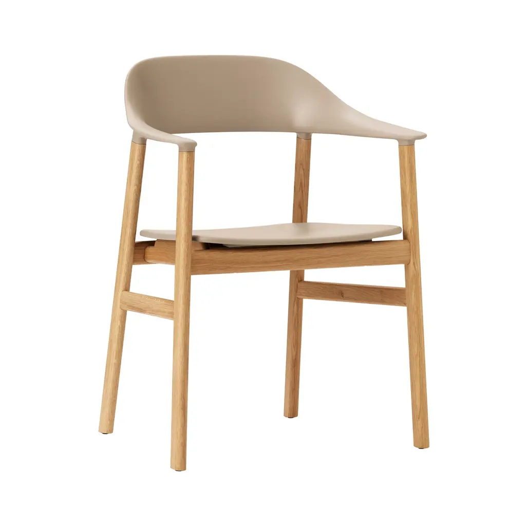 With an armchair version, designer Simon Legald expands his innovative seating series that reframes the Danish furniture legacy in cutting-edge terms. Herit (which is short for “heritage”) combines a solid oak frame with plastic molded over a core of foam to create the substantial seat and back, bringing optimum comfort with its ergonomic contours. In sum, it’s a versatile and forward-thinking take on the simple and honest virtues of Nordic style and classic fine craftsmanship.