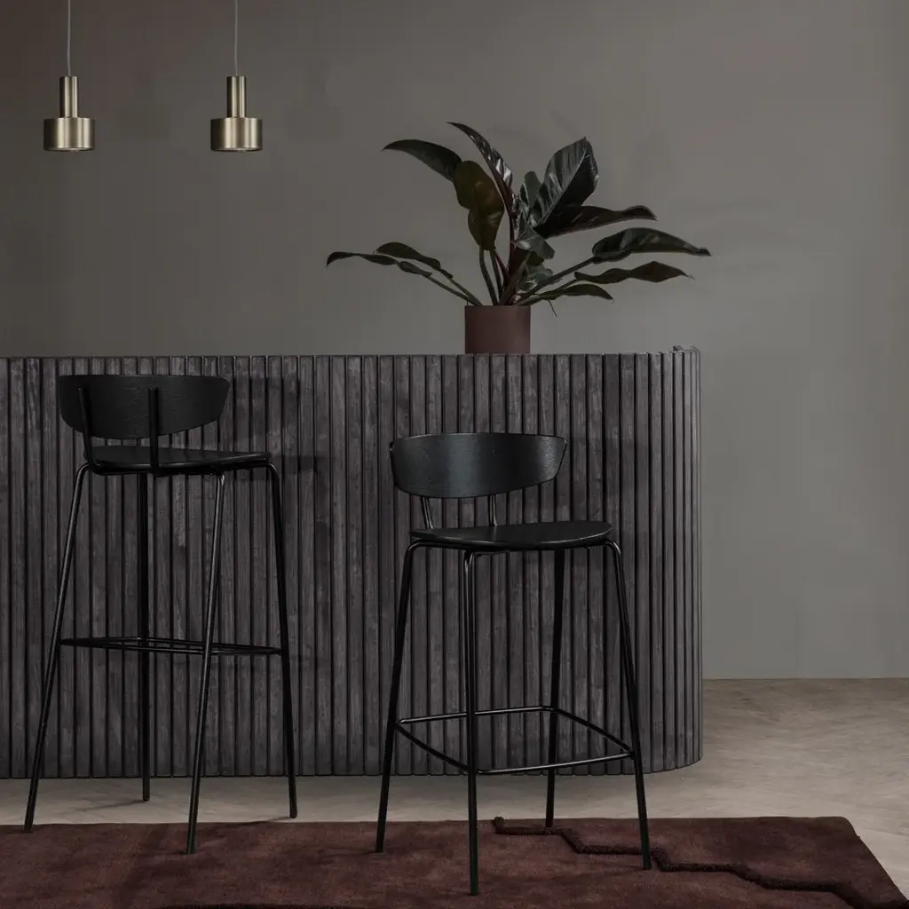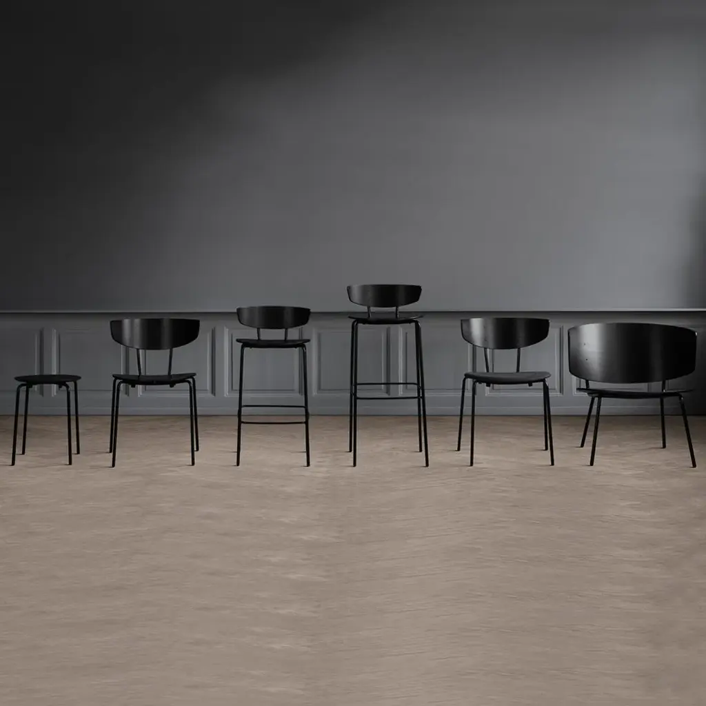 Staying in line with the essence of the Herman series, the bar addition preserves the sleek lines and comfort of the curved backrest, forming a classic chair in the intersection of aesthetics and function. This is a lower version of the bar stool with a footrest for extra sitting comfort, perfect for nights in good company in the kitchen or at the home bar.