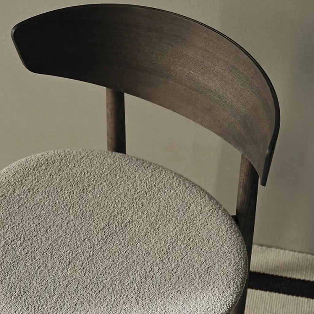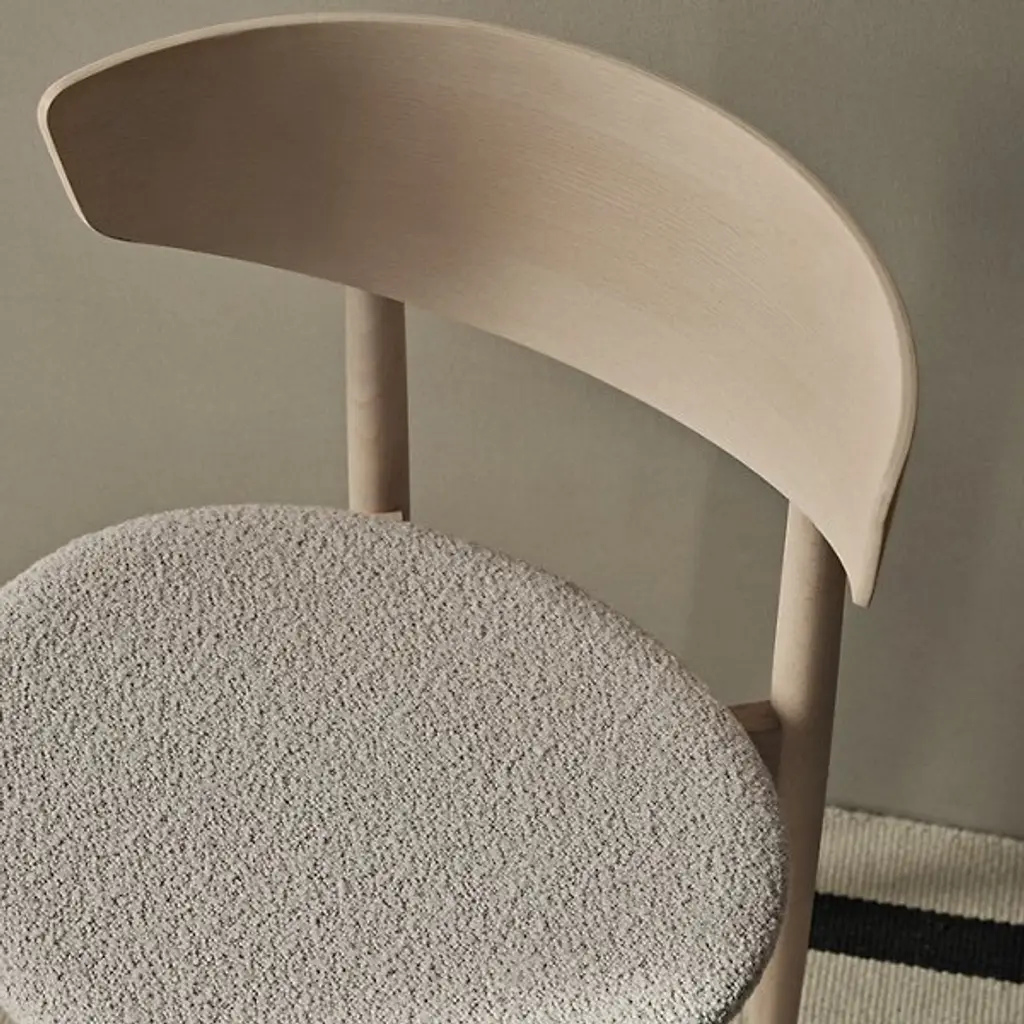 The Herman Dining Chair, Upholstered Seat from Ferm Living combines modern, contemporary aesthetics with simple functionality. Crafted entirely from FSC™-certified wood, it features a solid wood frame, seat, and backrest made of wood veneer. The broad, curved backrest provides ample support and can serve as an armrest. Its timeless design ensures it fits seamlessly into any home setting. Created in collaboration with the Danish design studio Herman Studio, the Herman collection includes seating furniture characterized by elegant, modern lines and functional aesthetics. This chair is a perfect addition to any dining room, offering style and comfort.