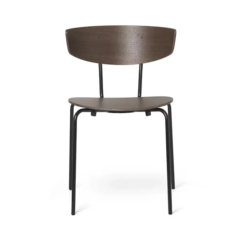 The Herman Dining Side Chair from Ferm Living presents a smooth, minimalist character to dining spaces, combining casual comfort with practical engineering. A creative collaboration with the Danish Herman Studio, the seat features a broad, curving backrest and seat made from FSC-certified wood veneer, offering reliable support while maintaining a light, friendly presence. A powder-coated steel frame offers sturdy support, while the chairs can be stacked when not in use. The backrest can rest easily on a tabletop, freeing up floor space and making cleanup a snap.