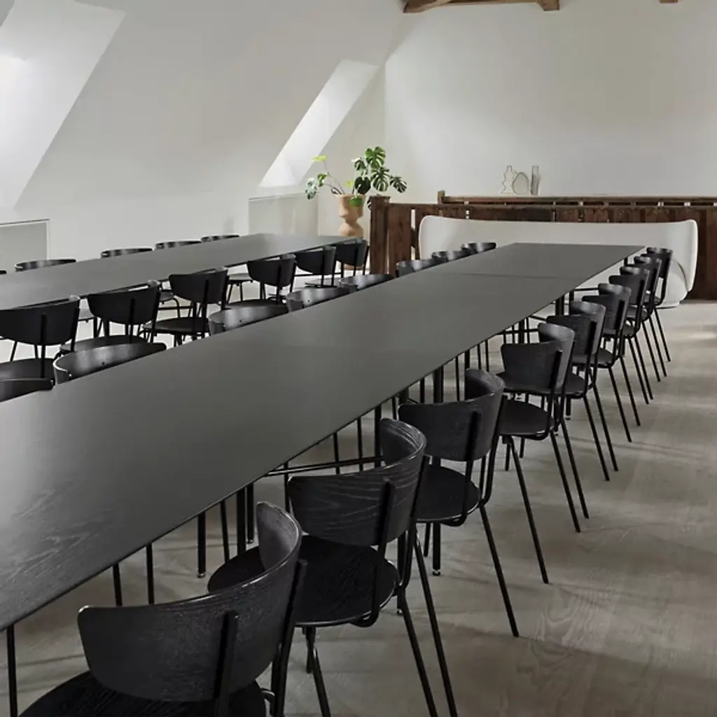 The Herman Dining Side Chair from Ferm Living presents a smooth, minimalist character to dining spaces, combining casual comfort with practical engineering. A creative collaboration with the Danish Herman Studio, the seat features a broad, curving backrest and seat made from FSC-certified wood veneer, offering reliable support while maintaining a light, friendly presence. A powder-coated steel frame offers sturdy support, while the chairs can be stacked when not in use. The backrest can rest easily on a tabletop, freeing up floor space and making cleanup a snap.