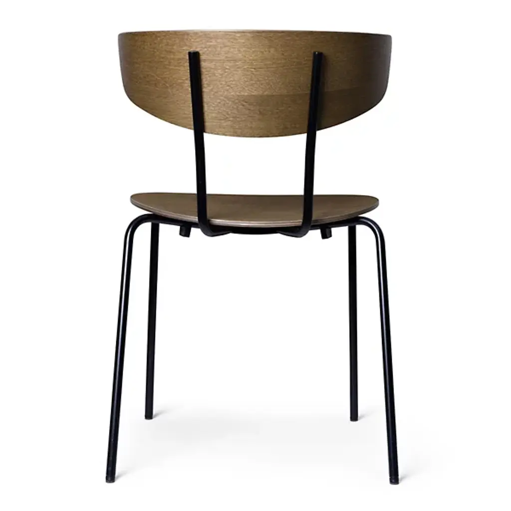 The Herman Dining Side Chair from Ferm Living presents a smooth, minimalist character to dining spaces, combining casual comfort with practical engineering. A creative collaboration with the Danish Herman Studio, the seat features a broad, curving backrest and seat made from FSC-certified wood veneer, offering reliable support while maintaining a light, friendly presence. A powder-coated steel frame offers sturdy support, while the chairs can be stacked when not in use. The backrest can rest easily on a tabletop, freeing up floor space and making cleanup a snap.
