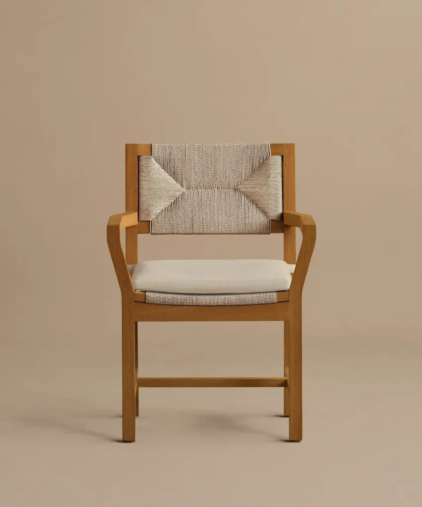 Shaker-inspired, the saddle brown wood frames the woven seat and back of this outdoor dining chair. For ordering assistance and more, please [contact us](https://www.anthropologie.com/help/contact-us#contact-us-section-2). For aesthetic advice and tips to help decorate your space, enjoy our complimentary [home styling services](https://www.anthropologie.com/help/personal-styling-home-decor).