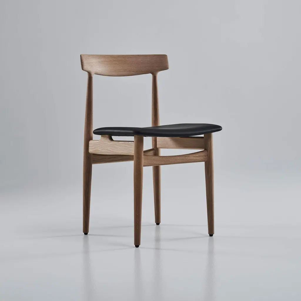 Hertug is an elegant dining chair recognisable by the lines between the backlegs and backrest. It was originally drawn for Viken Møbelfabrikk in Bergen by Fredrik A. Kayser while he was a freelance designer. Kayser graduated from National Academy of Craft and Art Industry in 1945. He designed Hertug with a simple and organic form to make it fit into all kinds of interiors. The seat has a light and floating effect created by only touching the frame where necessary, while the backrest makes you see and feel true craftsmanship. Features