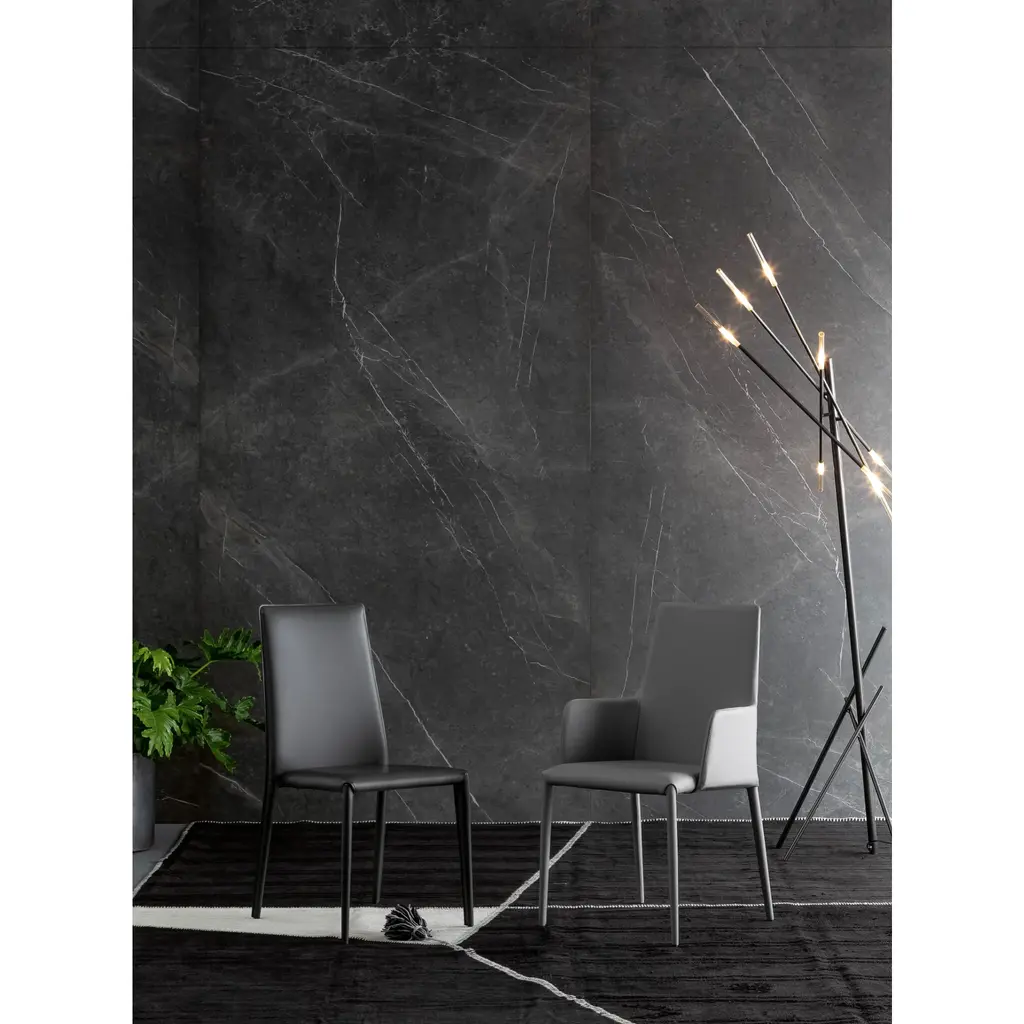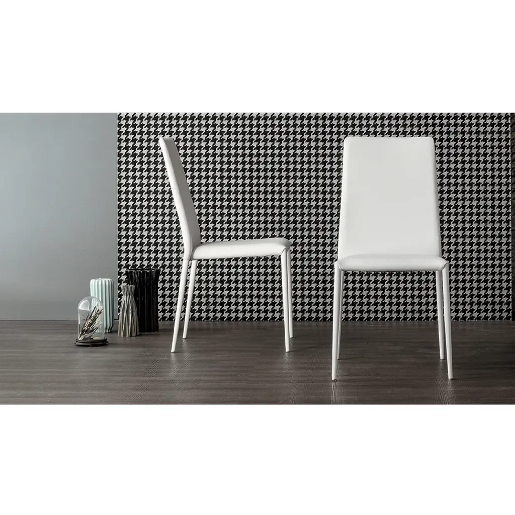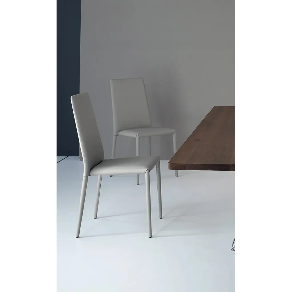 Elegant and refined, Eral is a padded chair with a high backrest that makes it especially comfortable and suitable for every setting and for any style. It is upholstered entirely in leather, eco-leather or emery-leather or in the version with painted metal legs, available in various colors, making it possible to create tone-on-tone combinations or interesting contrasts with the upholstered section. Comfortable and possessing great elegance, Eral has been designed with a discreet modernity, which allows it to interact with different tastes and worlds. In the fully upholstered variant, this chair gives an effect of great uniformity and stylistic compactness, always being pleasantly balanced: a valuable and refined approach to functionality.