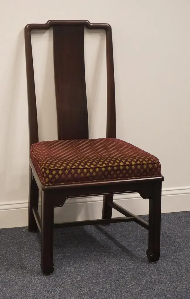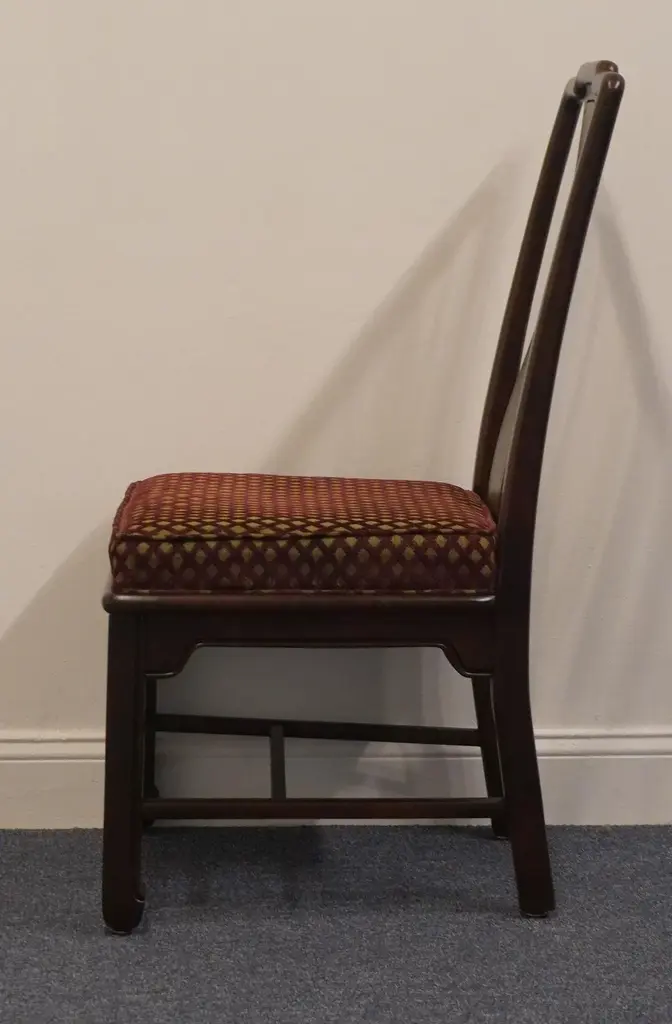 HIGH END Asian Chinoiserie Splat Back Dining Side Chair 2406-535 Cannot identify brand, but comparable in quality to brands like Stanley or Bassett 40.5" High 22.25" Wide 25" Deep Seat: 20" High We specialize in high end used furniture that we consider to be at least an 8 on a scale of 1 to 10 regarding condition, unless otherwise noted.