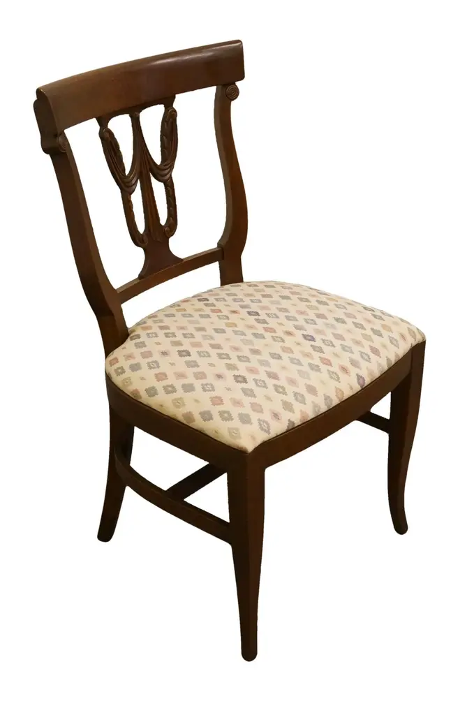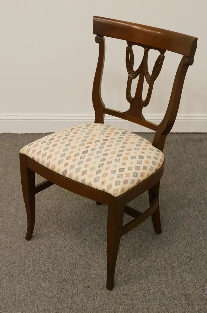High End Federal Style Mahogany Dining Side Chair 36" High 20" Wide 21.5" Deep Seat: 19" High We specialize in high end used furniture that we consider to be at least an 8 on a scale of 1 to 10 regarding condition, unless otherwise noted.